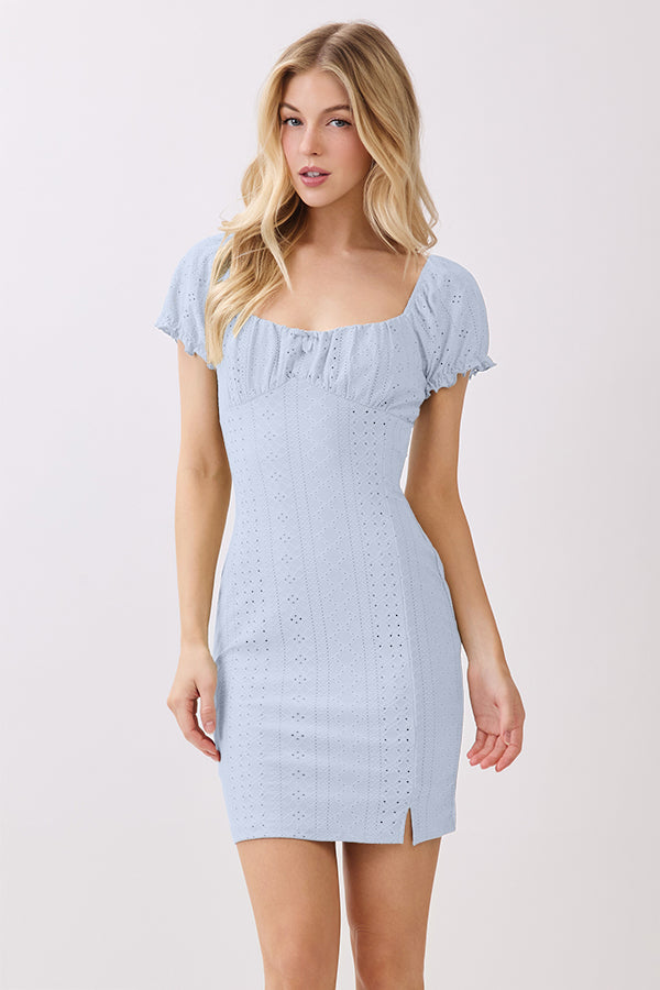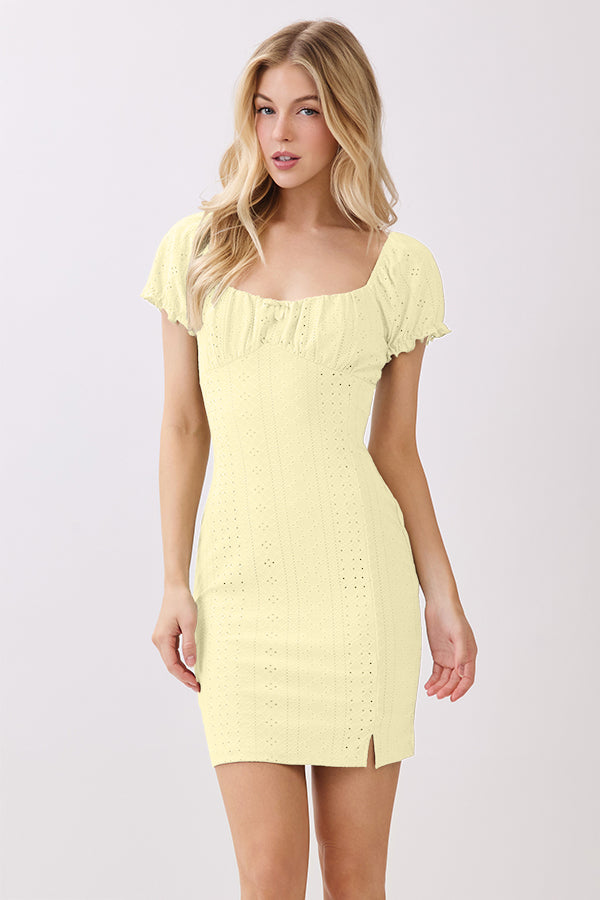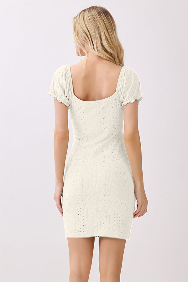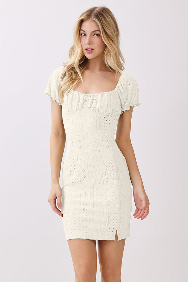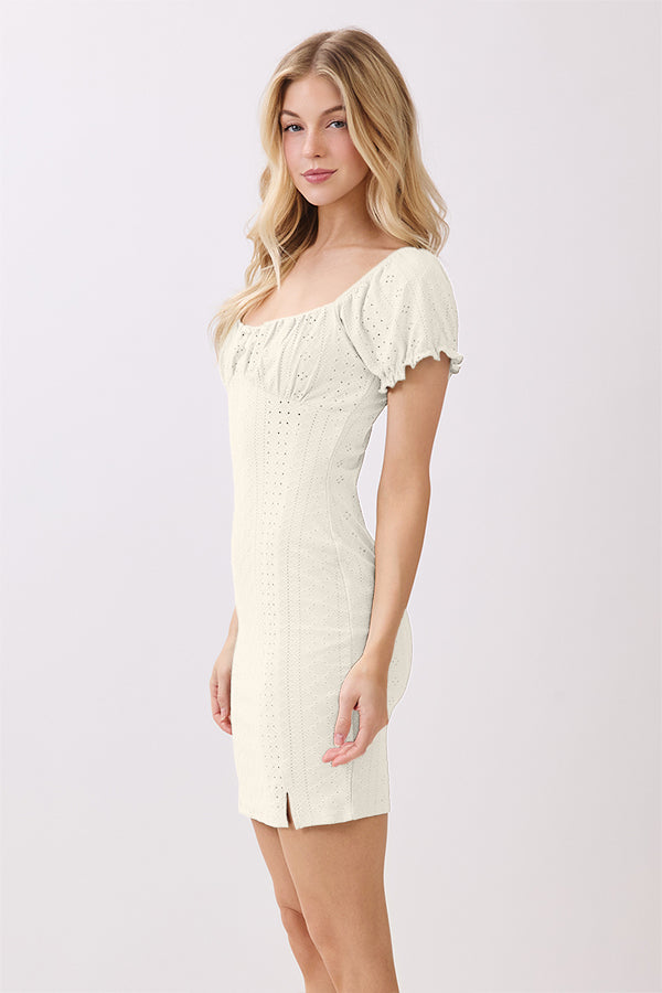 RUCHING PEASANT PUFF SLV MINI DRESS
