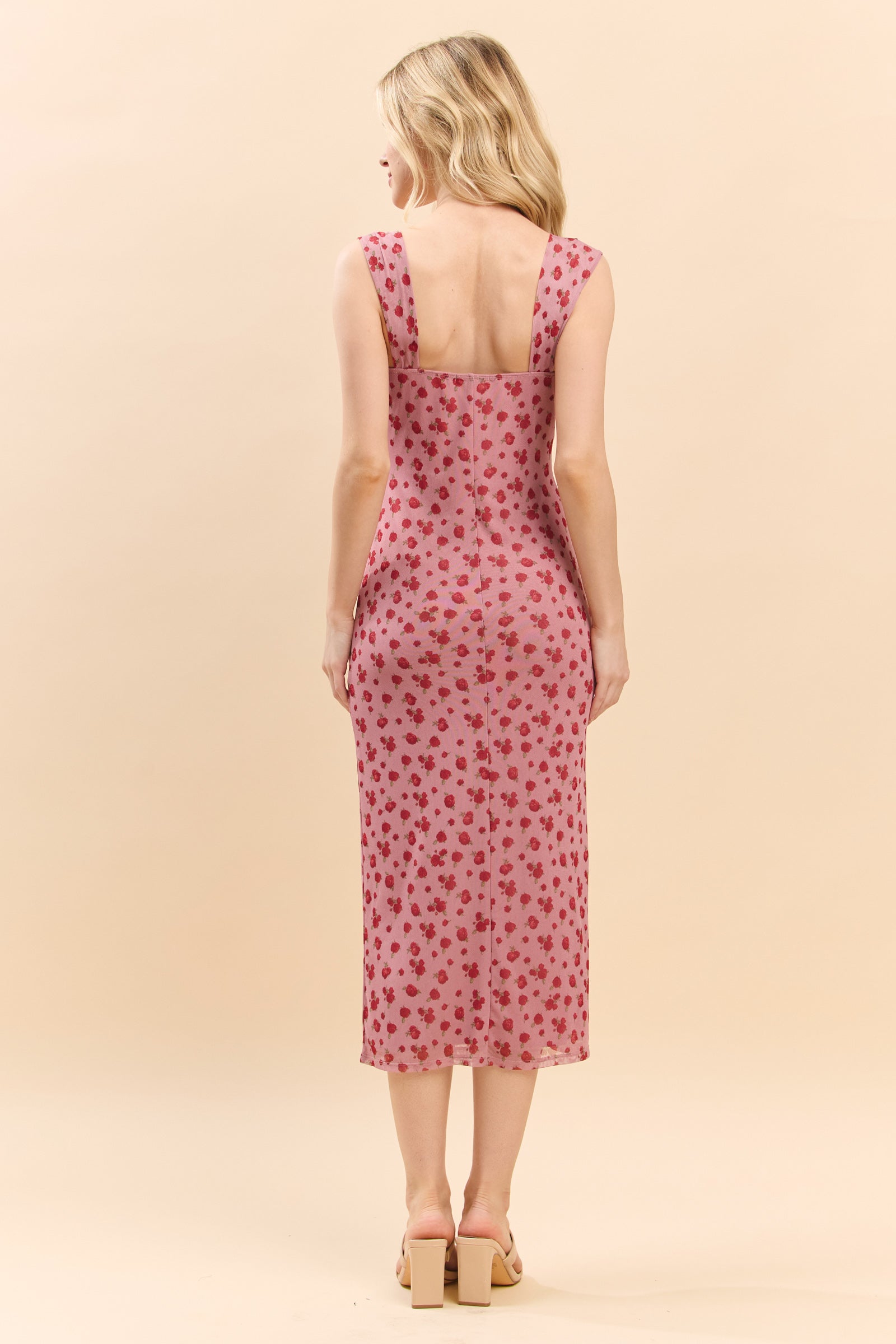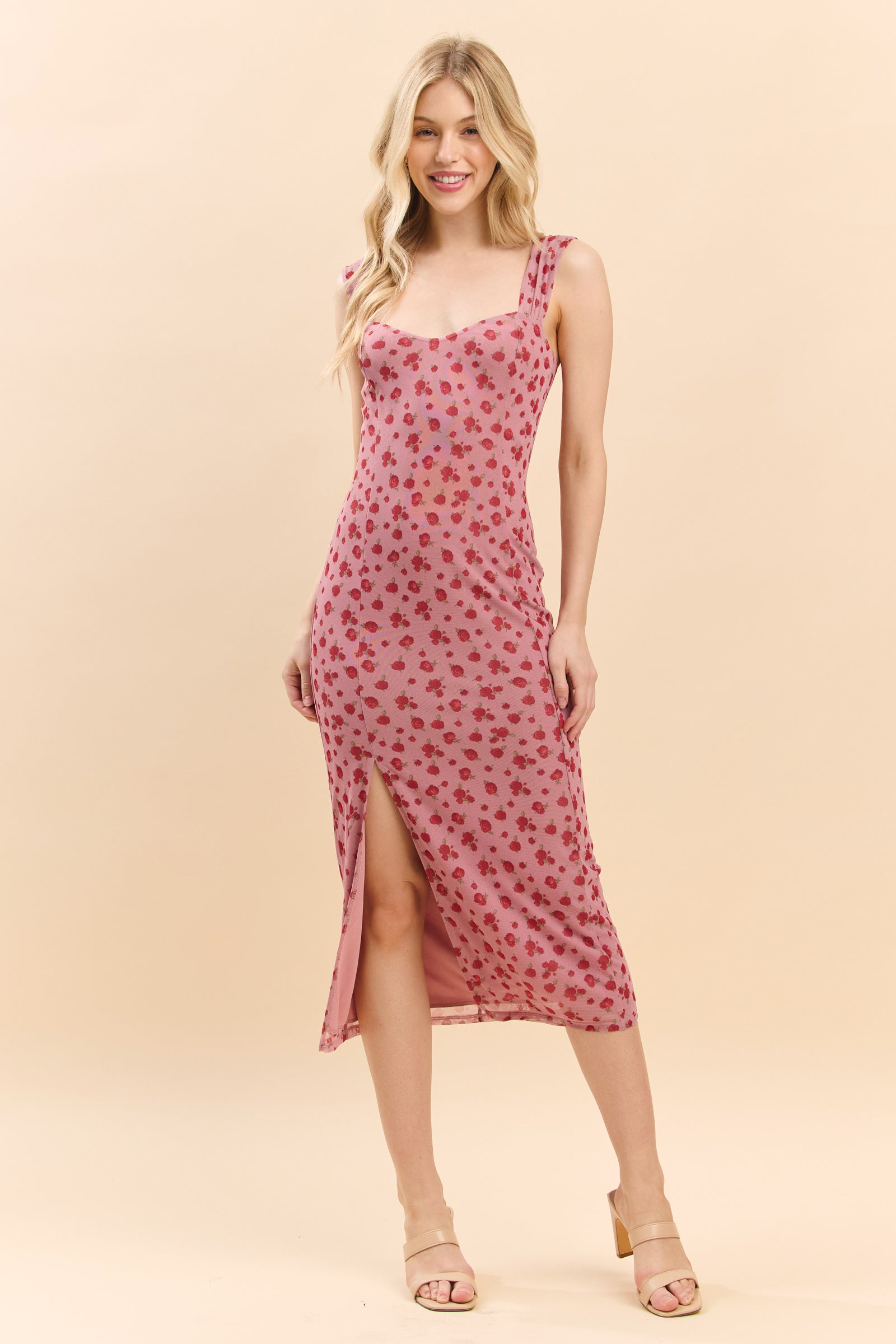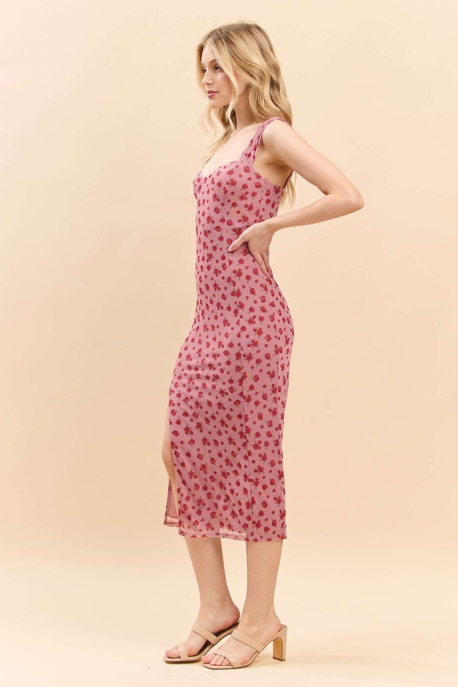 SWEETHEART BUSTIER PRINT MIDI DRESS