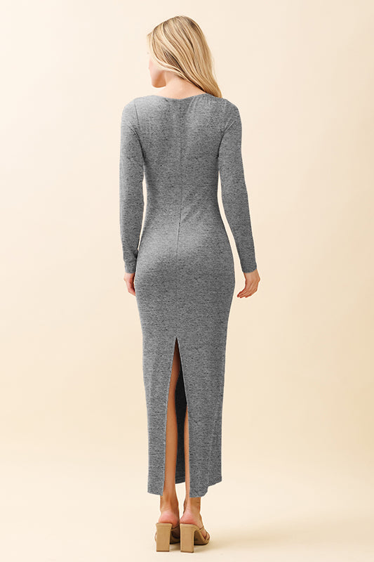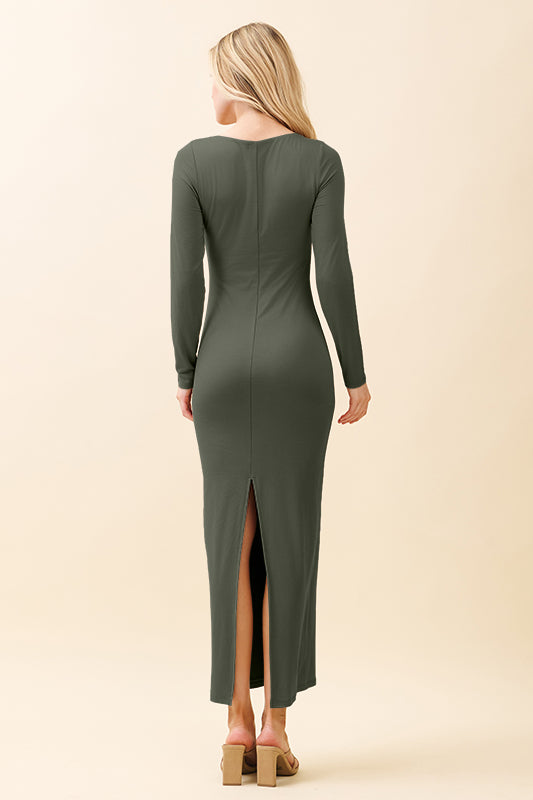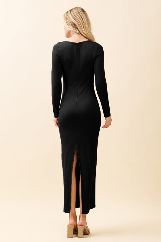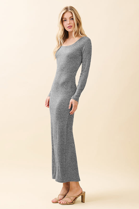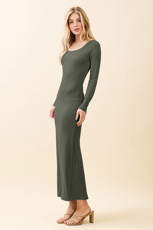 DOUBLE LAYERED SCOOP NECK LONG SLEEVE MAXI DRESS