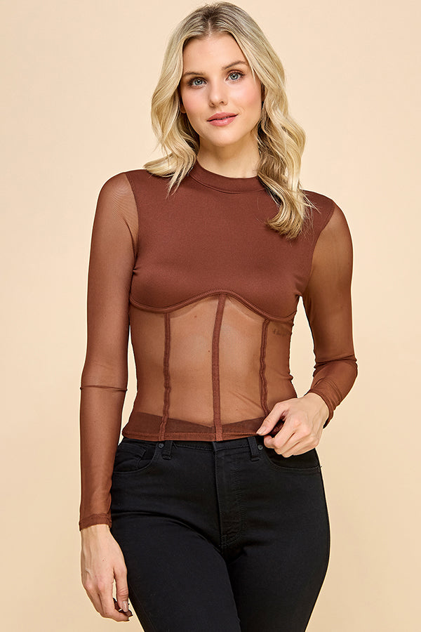 MESH INSERT MOCK NECK TOP