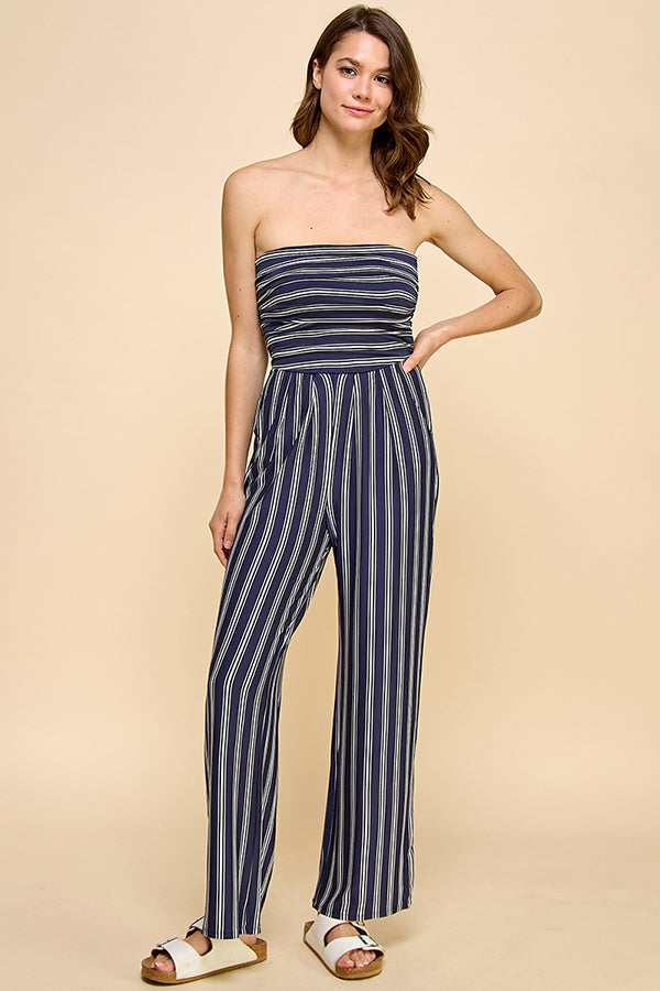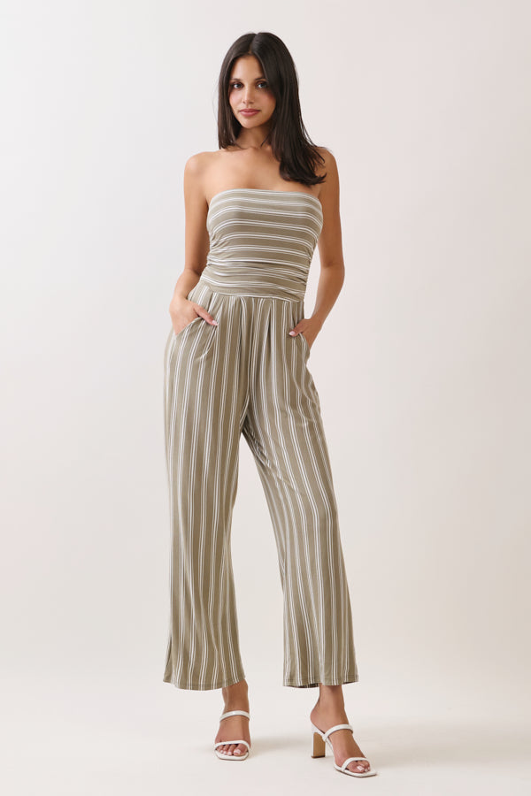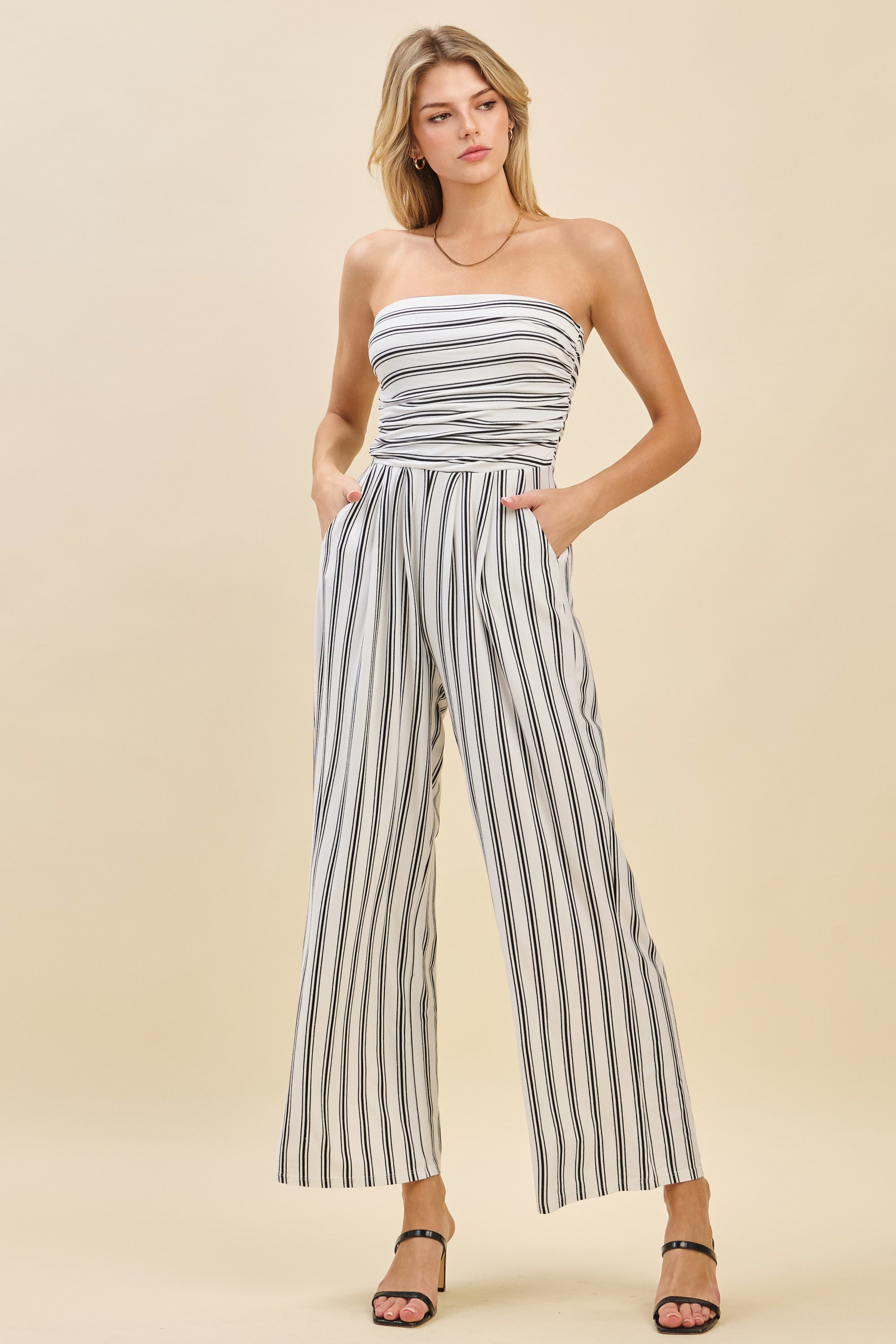 TUBE TOP W/ SHIRRING PALAZZO ROMPER