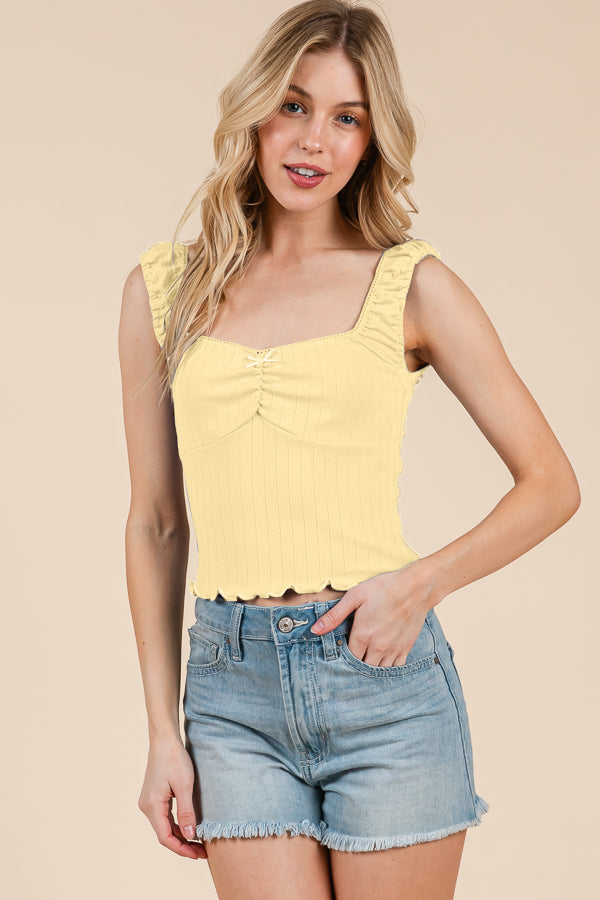 SWEET HEART POINTELLE RUCHED W/BOW TOP