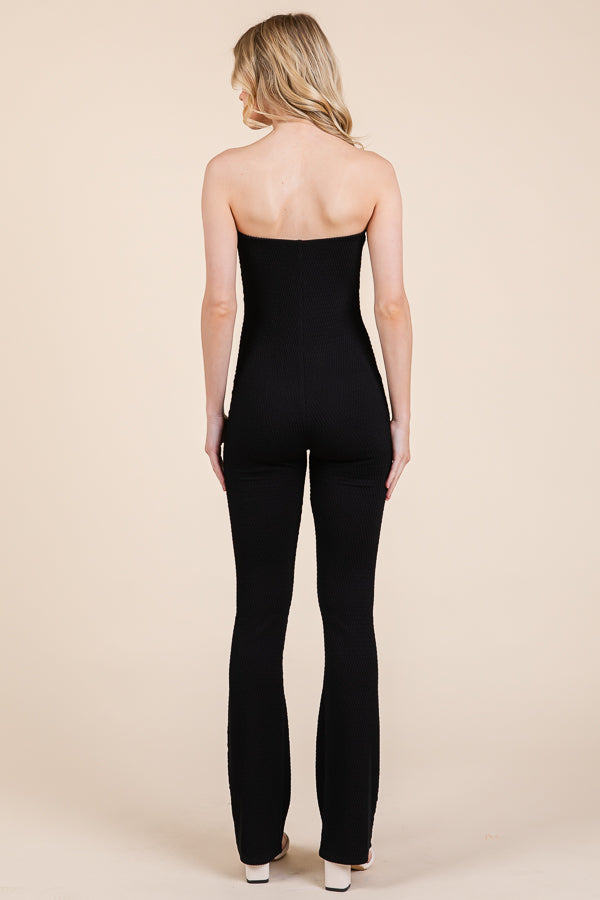 TUBE ZIGZAG PATTERN TEXTURE JACQUARD BOOT CUT JUMPSUIT