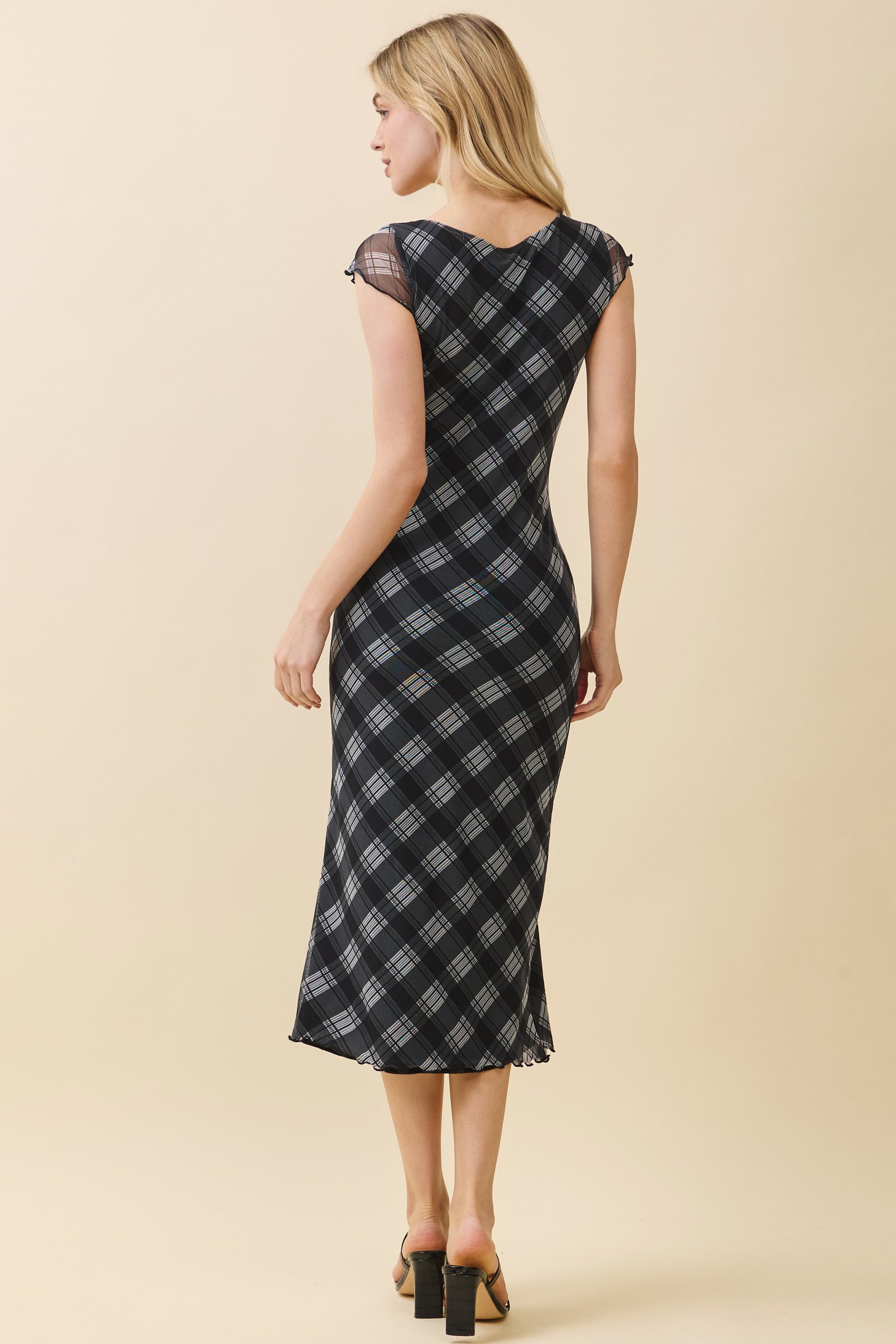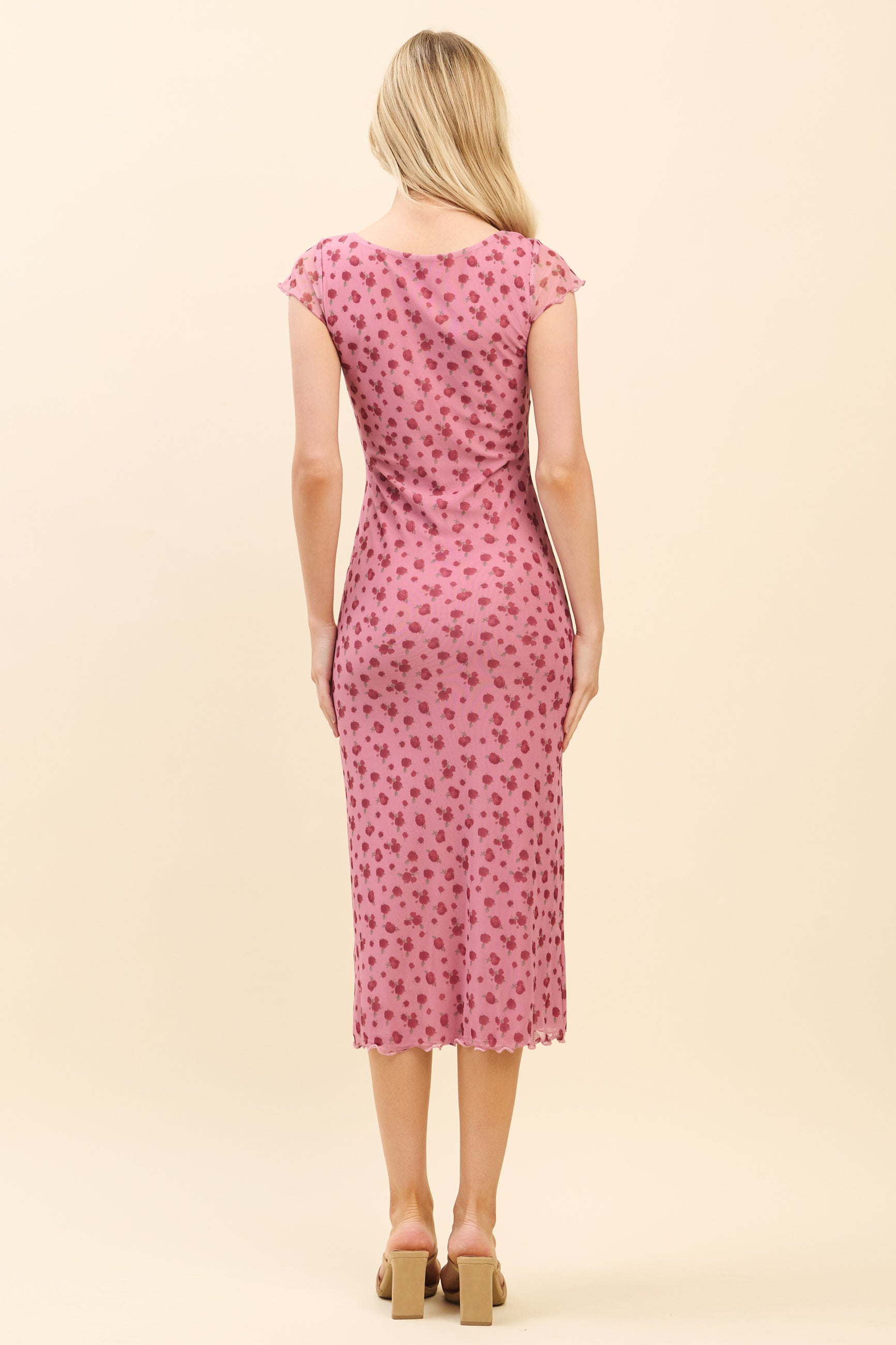 FRONT TIE, FULLY LINED PRINTED MESH MIDI DRESS