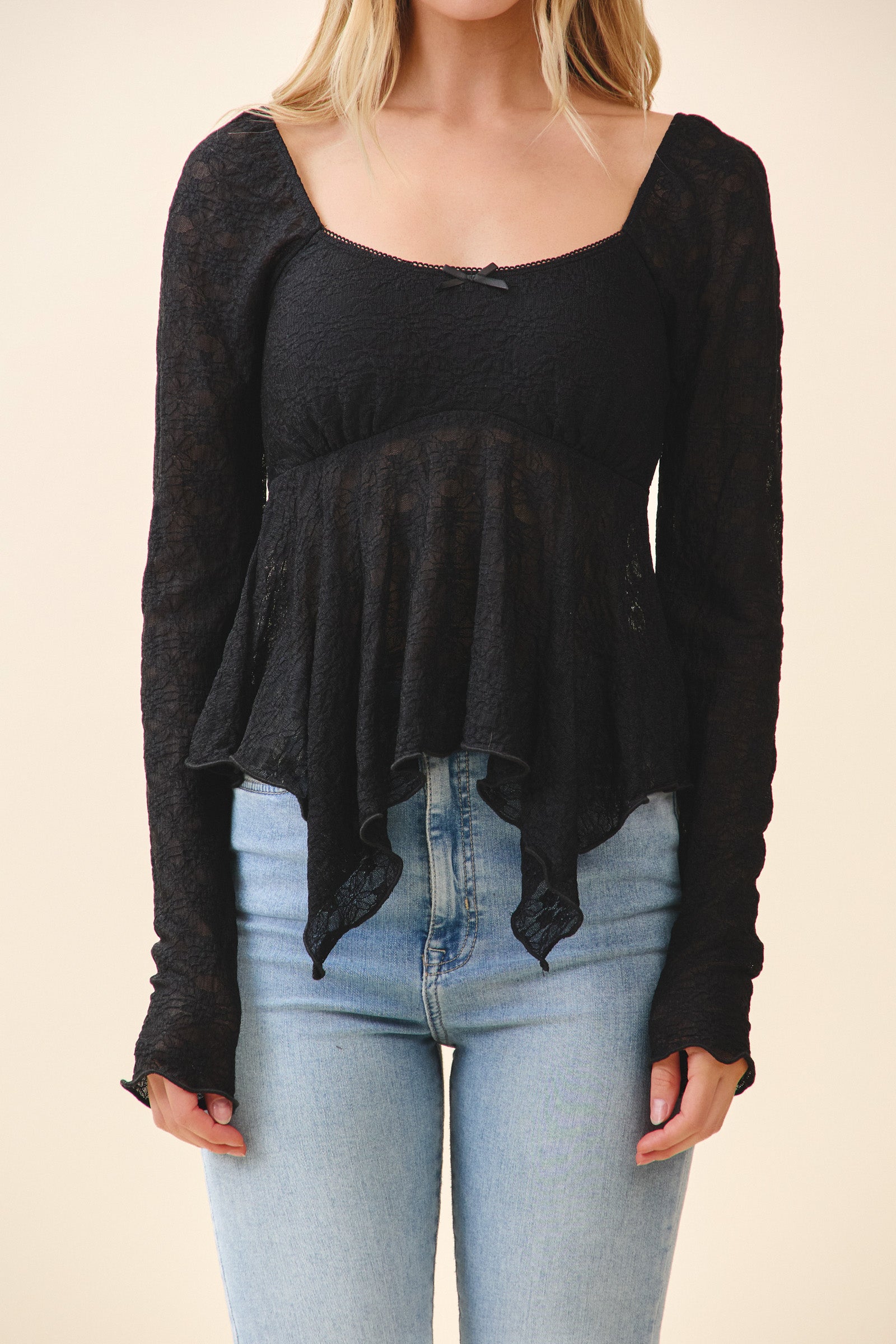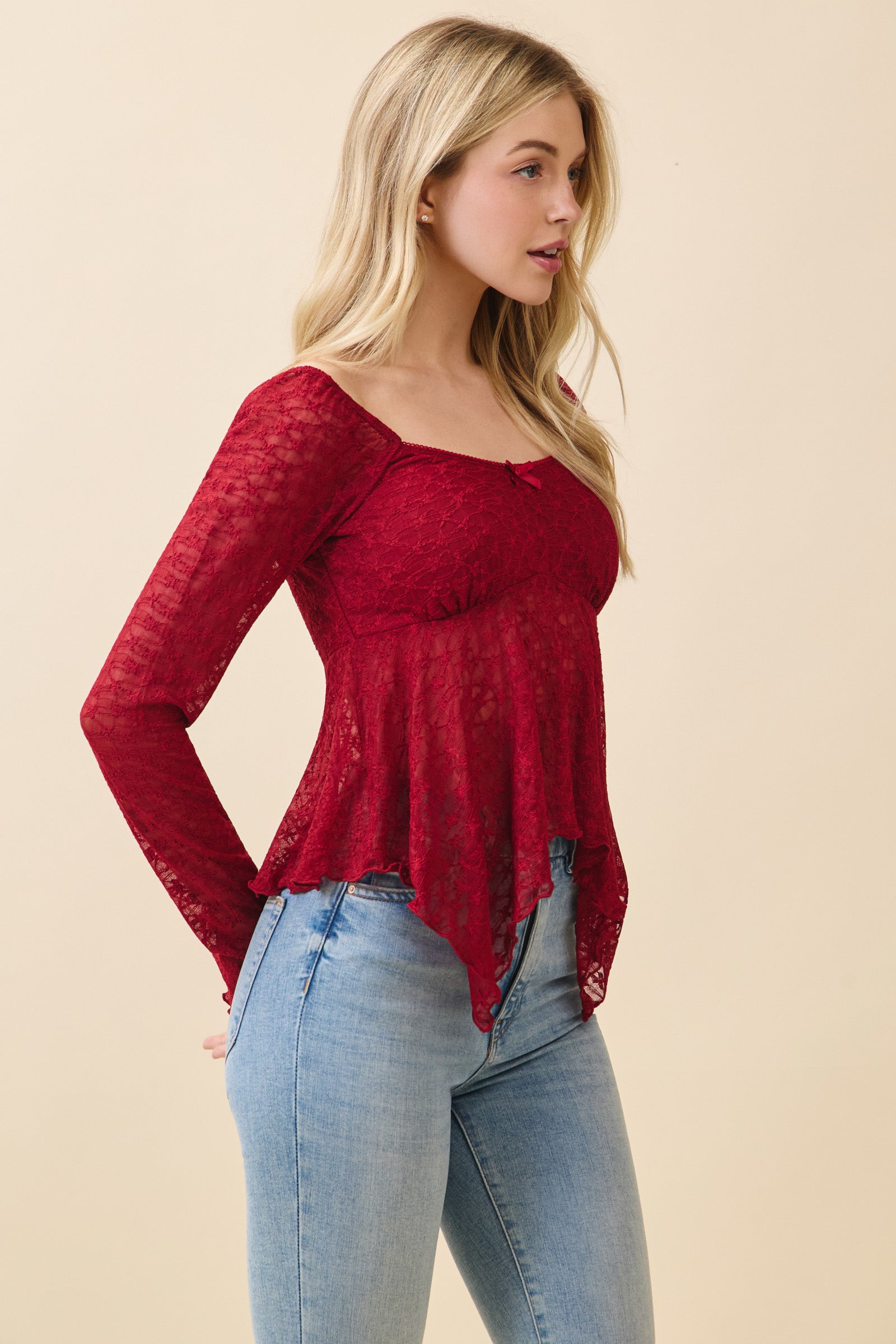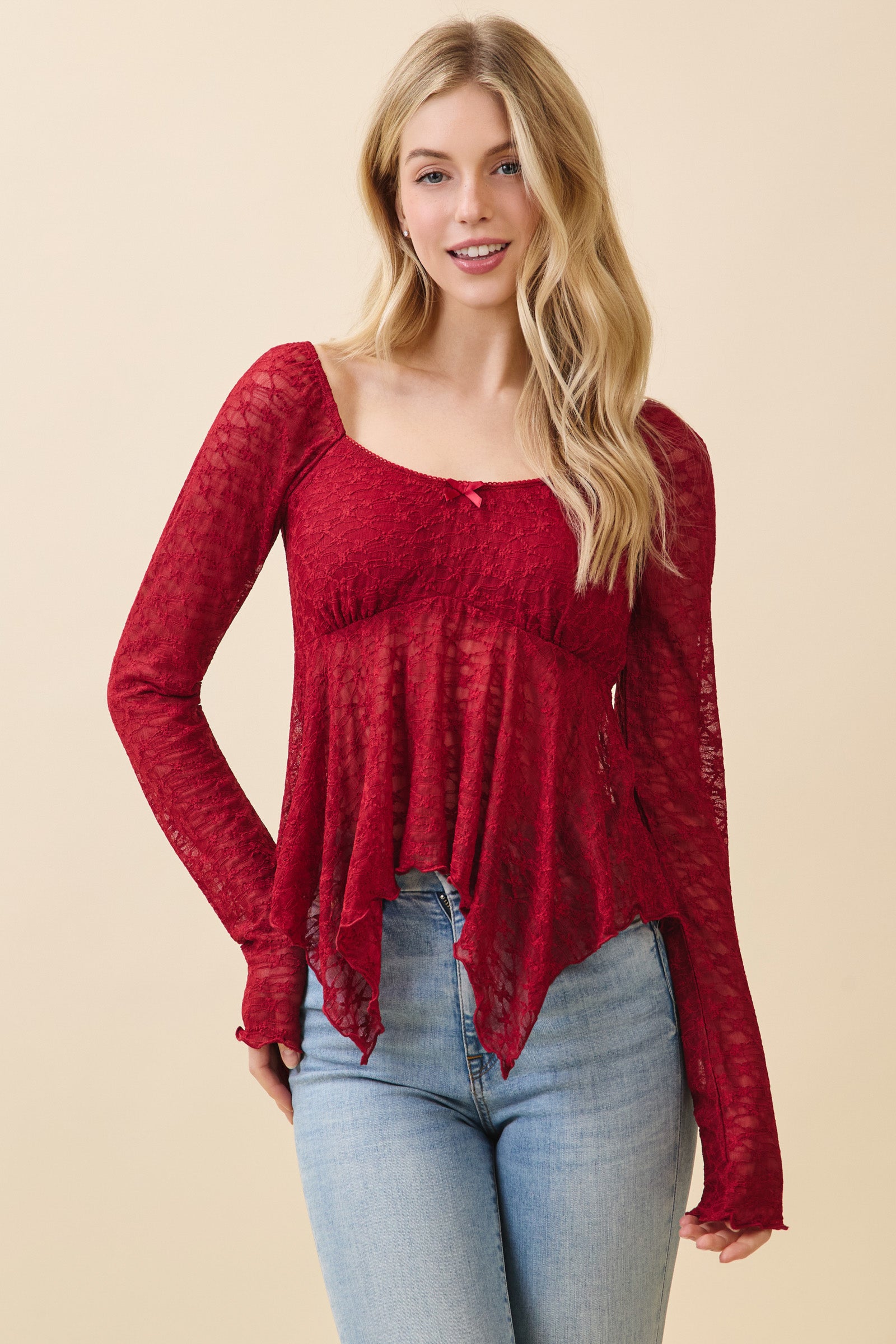 HIGH LOW FLY AWAY BRA PADDED LONG SLEEVE LACE TOP