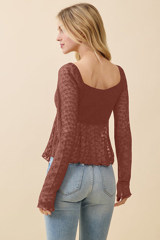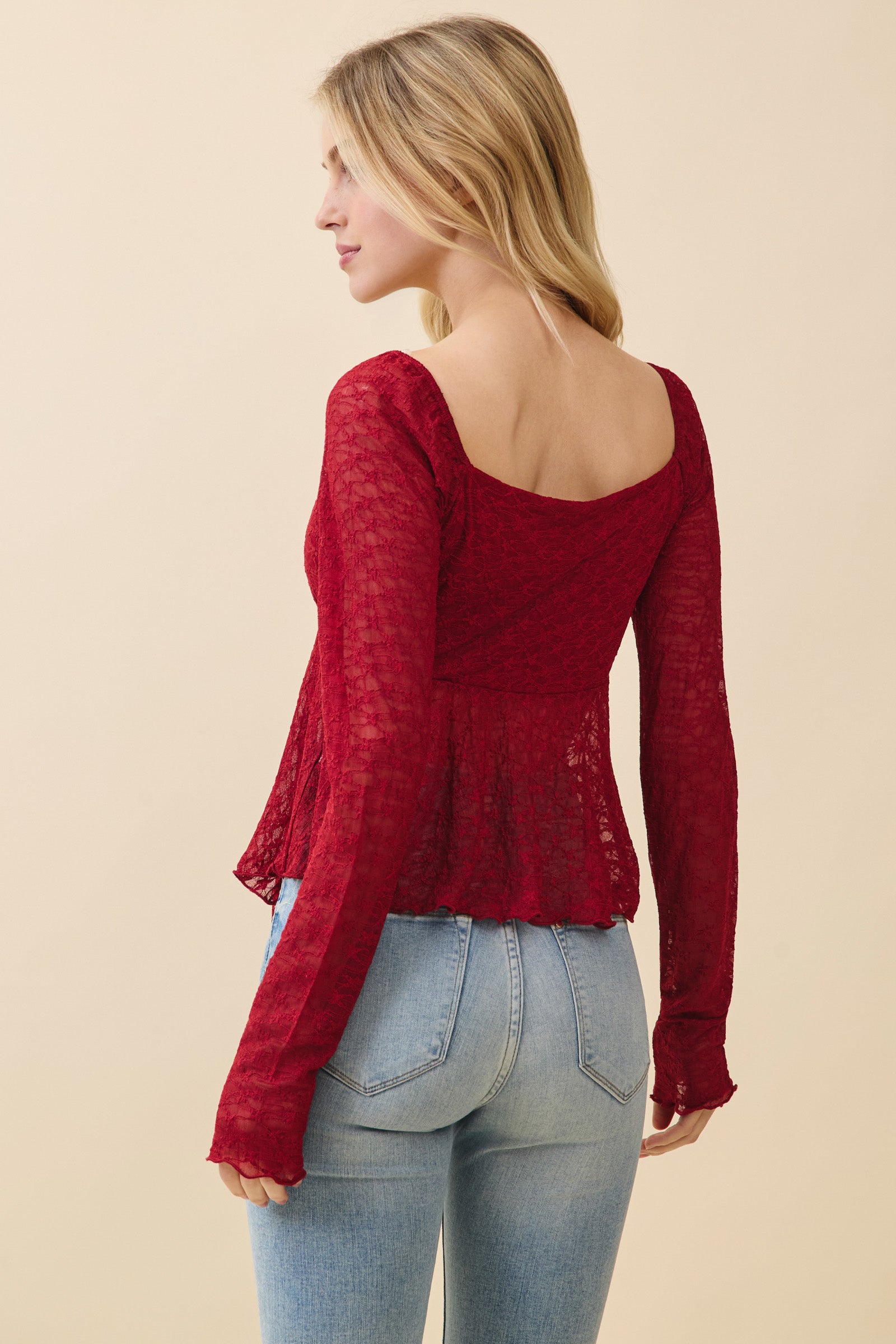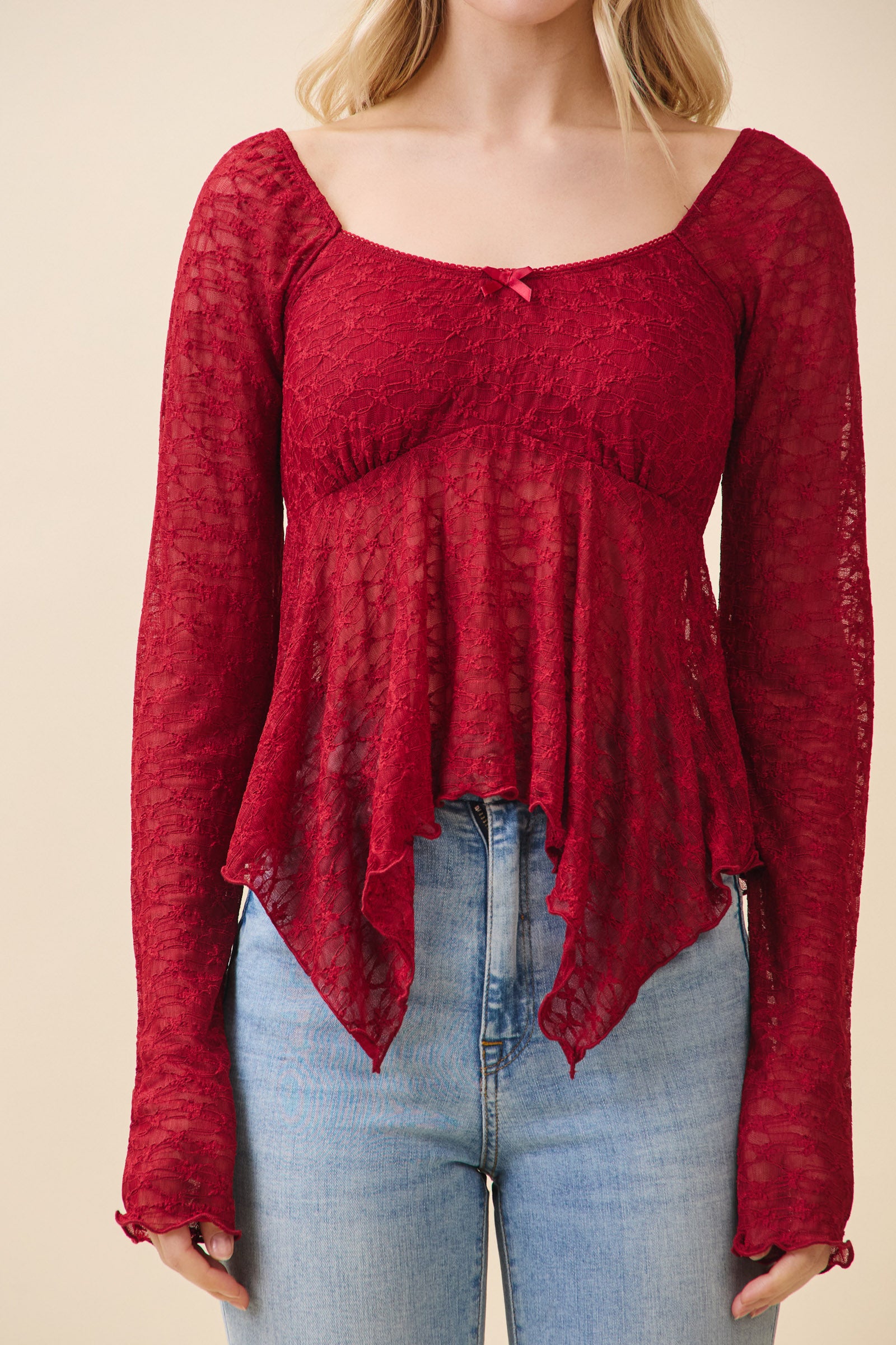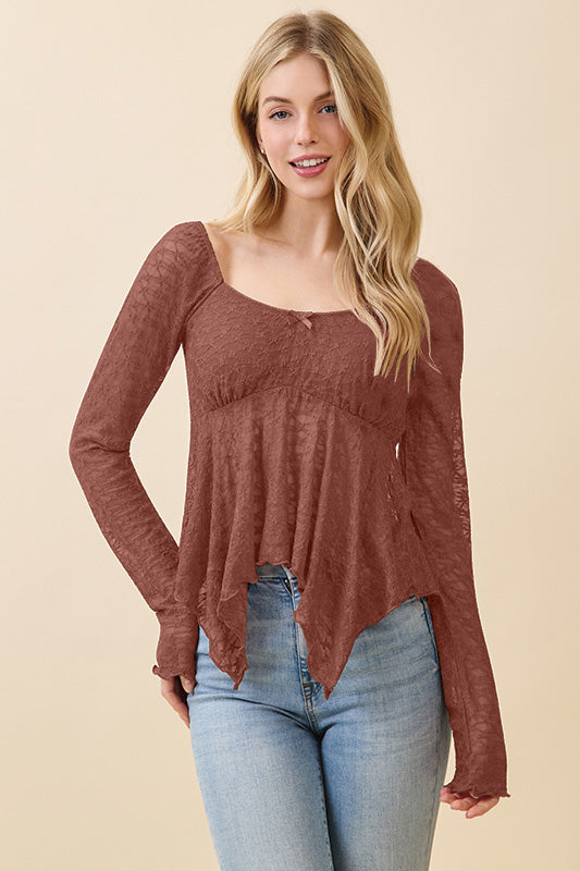 HIGH LOW FLY AWAY BRA PADDED LONG SLEEVE LACE TOP