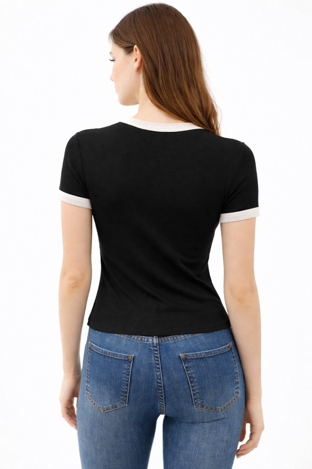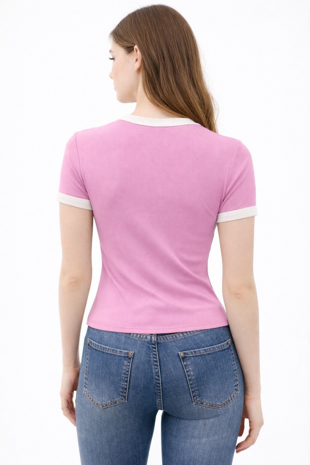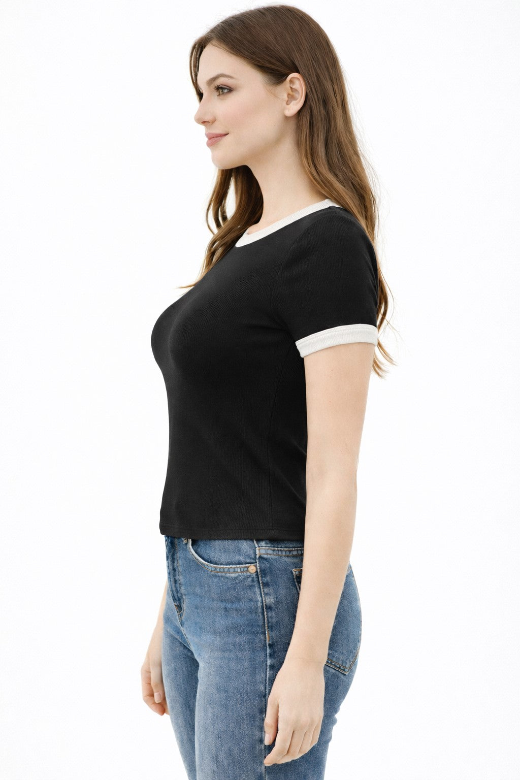 CREW NECK CONTRAST BINDING RINGER SHORT SLV TOP