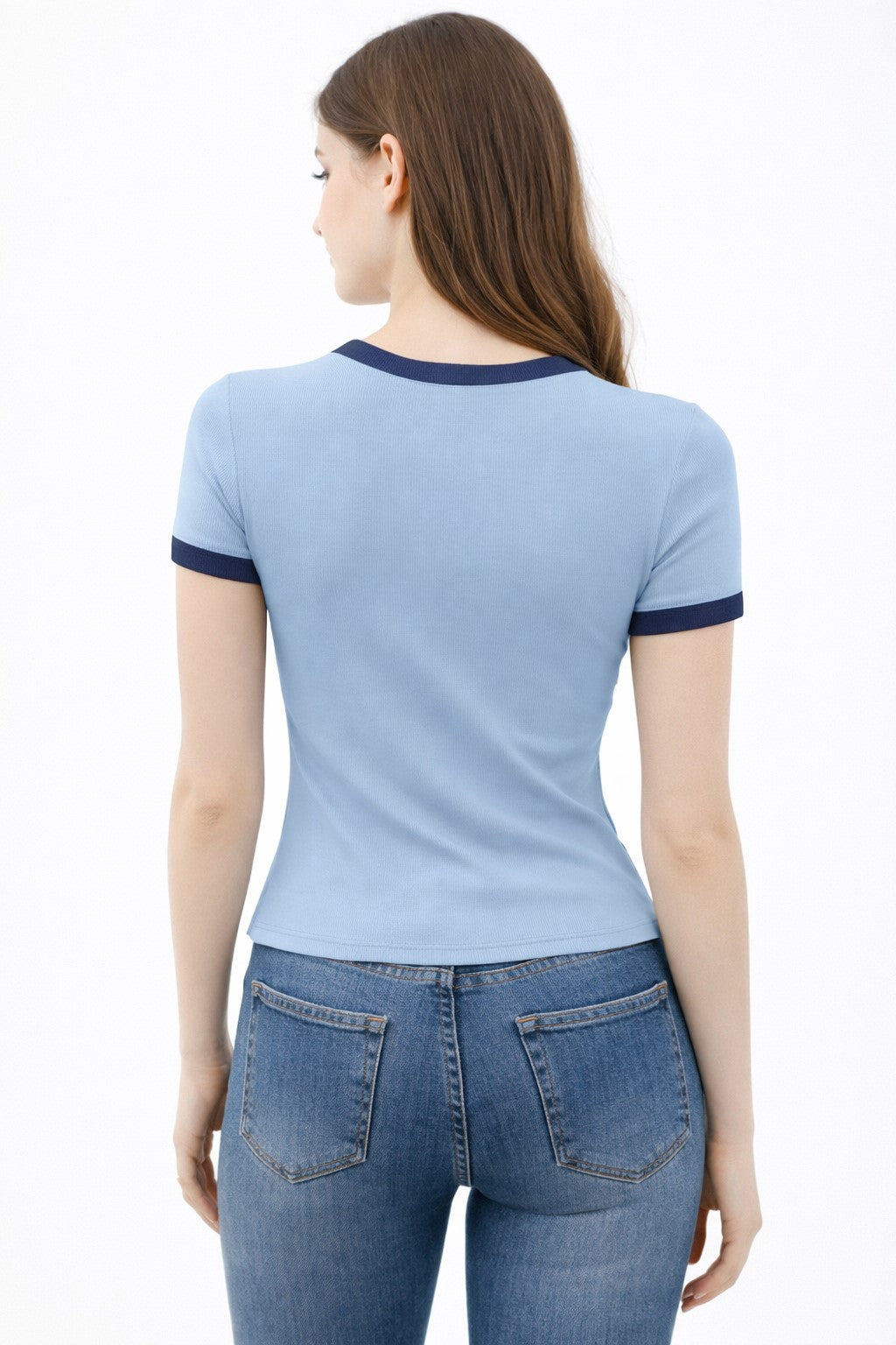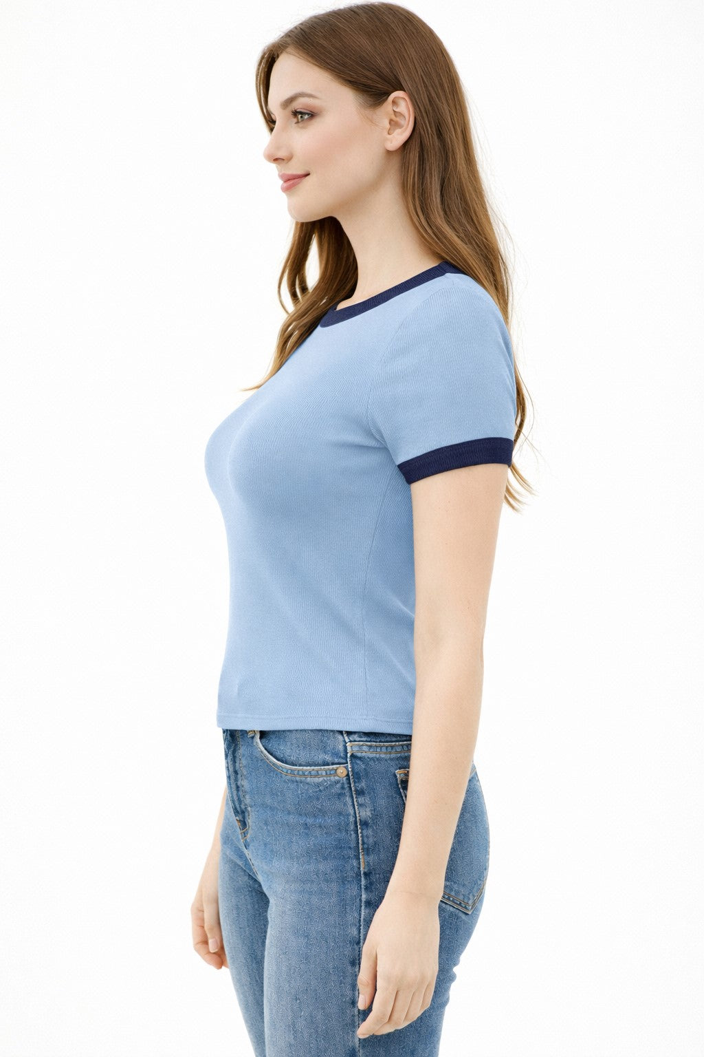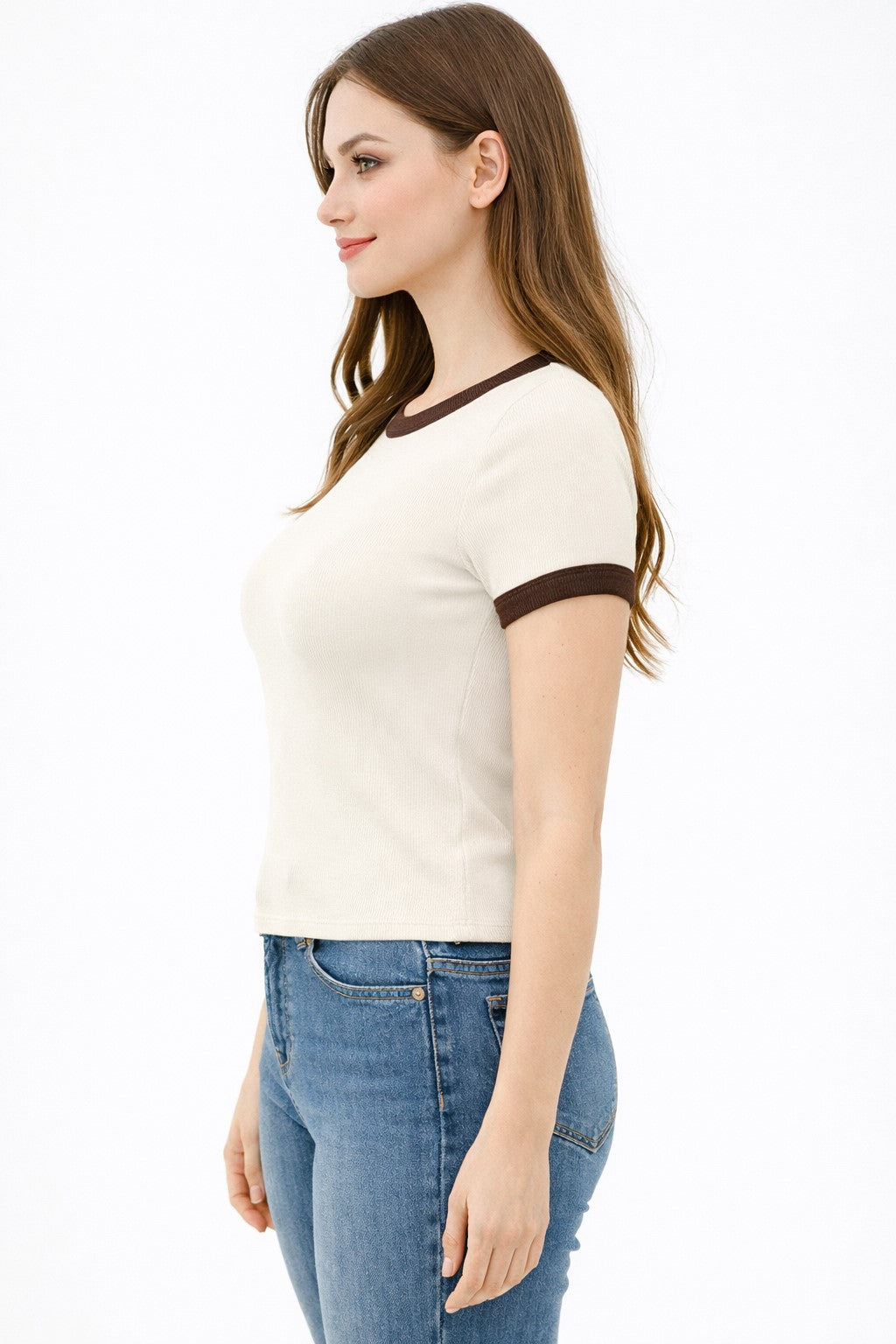 CREW NECK CONTRAST BINDING RINGER SHORT SLV TOP