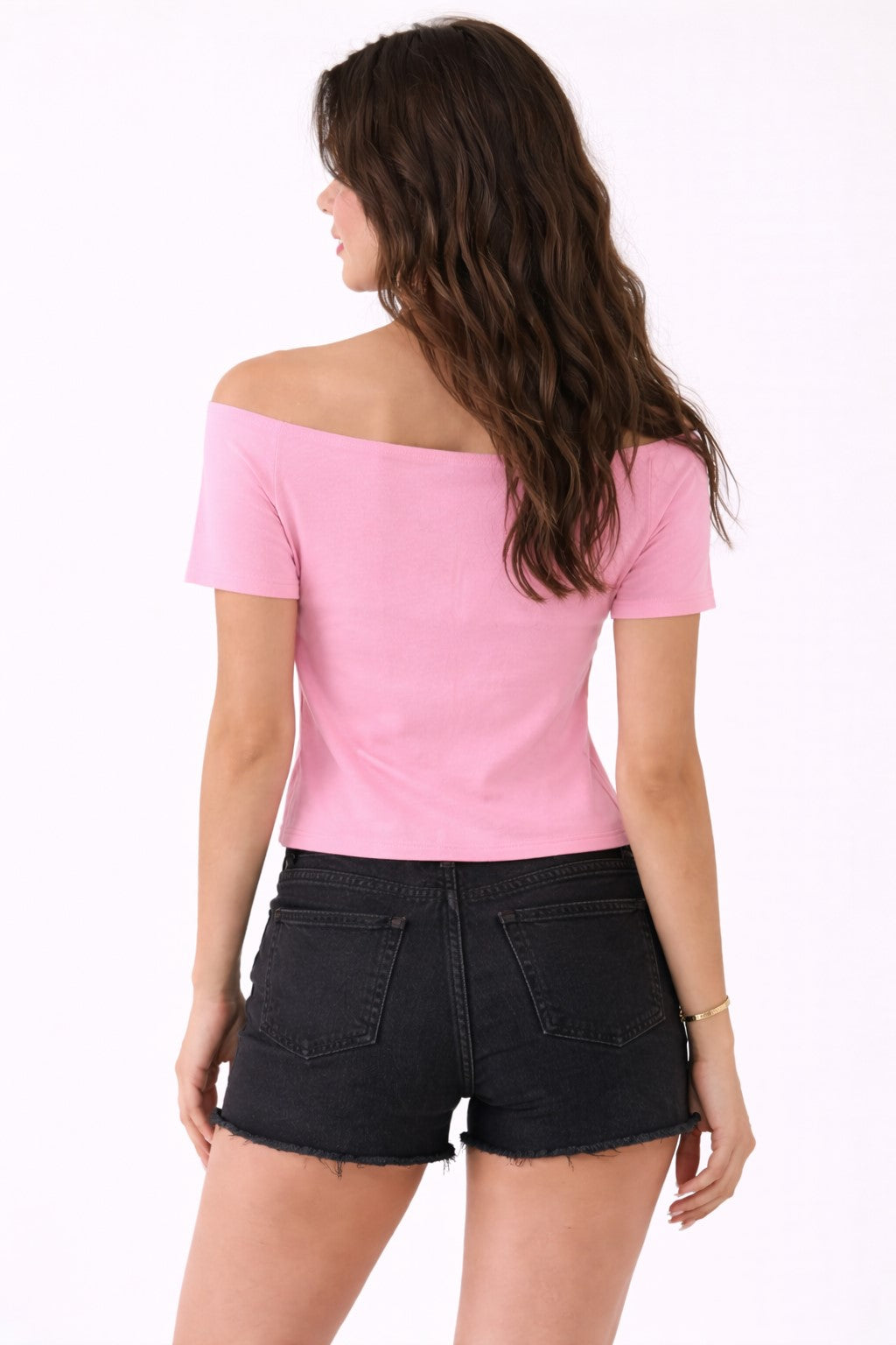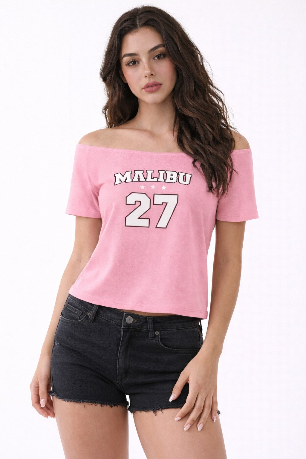 OFF SHOULDER W/GRAPHIC PRINT SHORT SLEEVE TOP