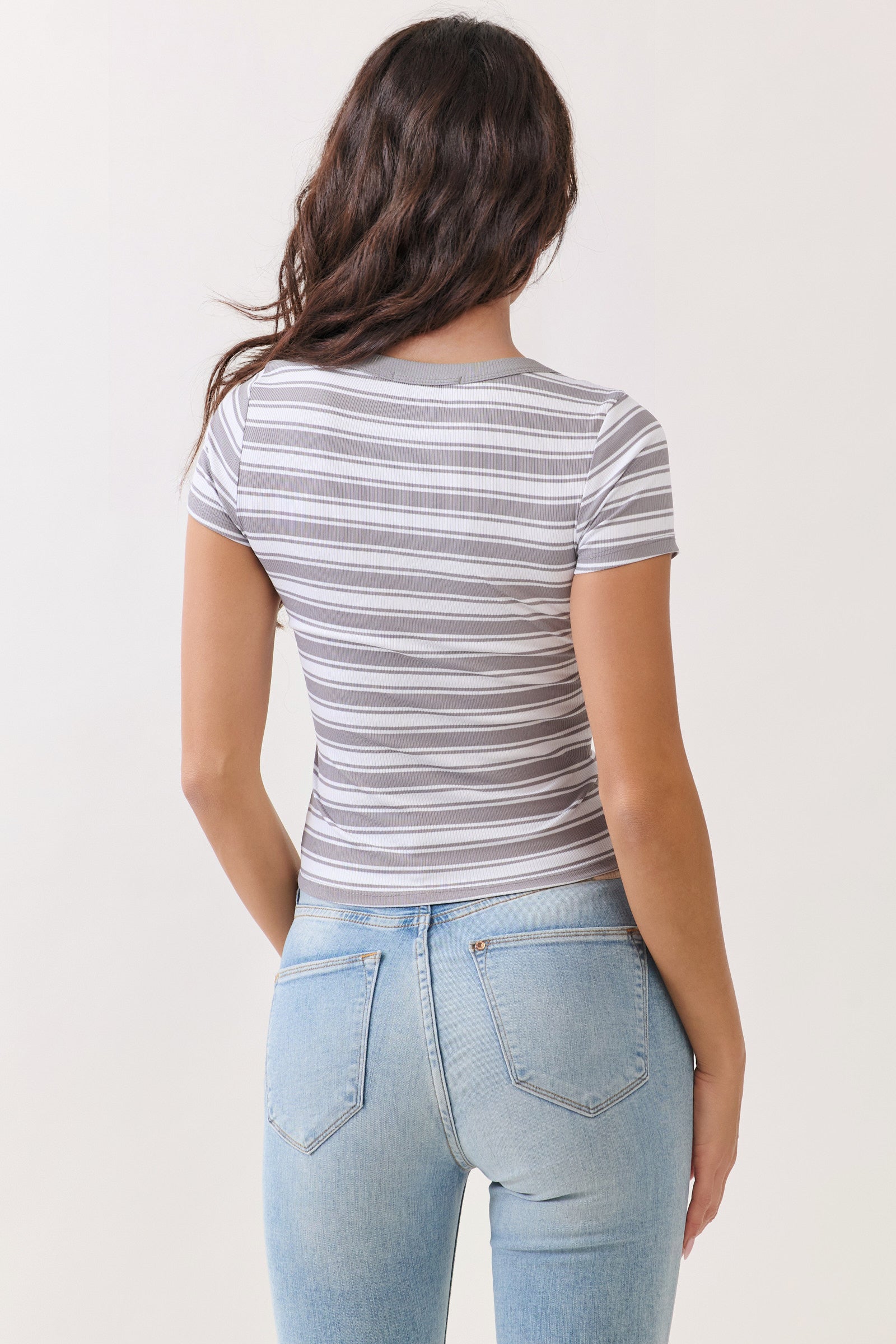 SCOOP NECK CONTRAST BINDING SHORT SLEEVE TOP