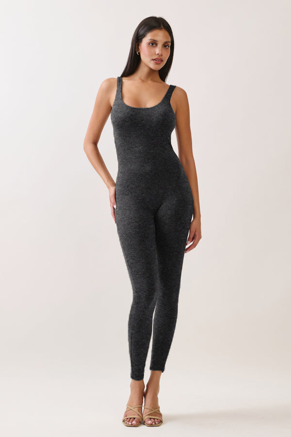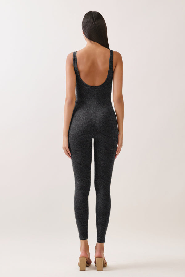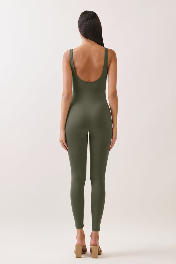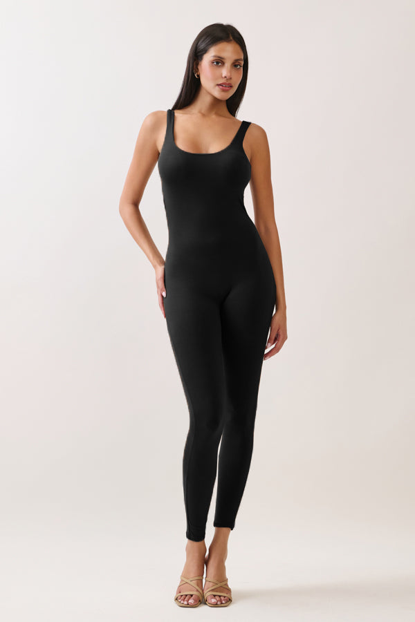 BUILT-IN BRA DOUBLE SCOOP NECK CATSUIT