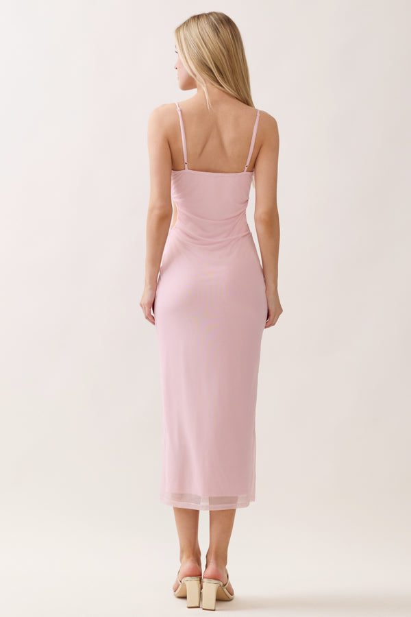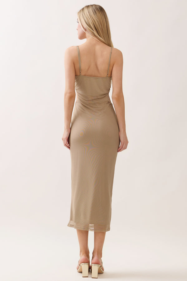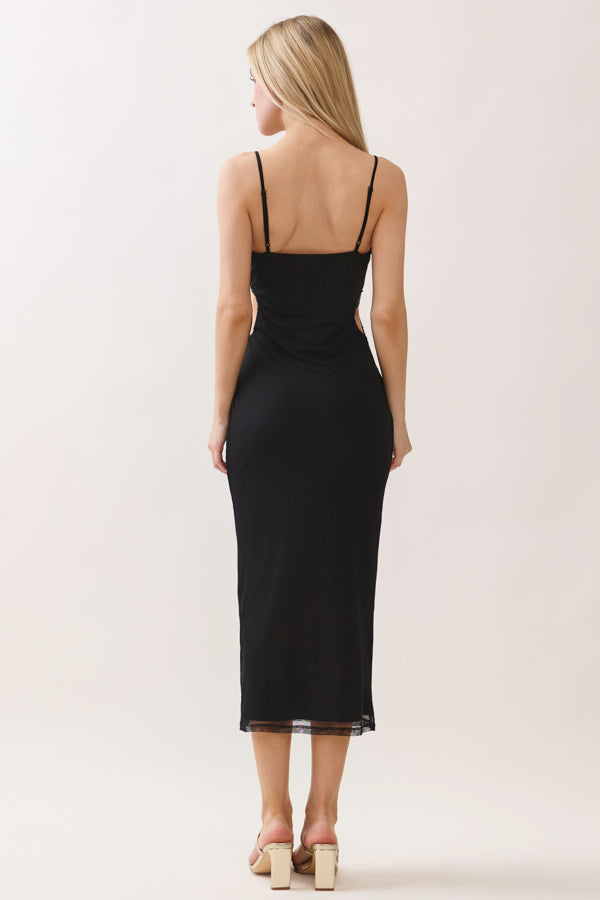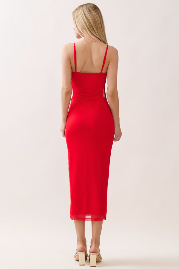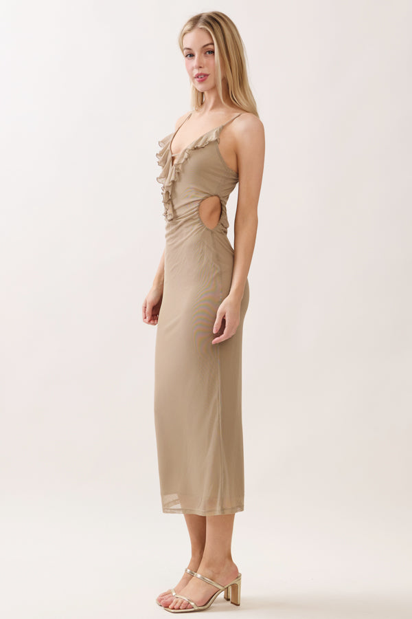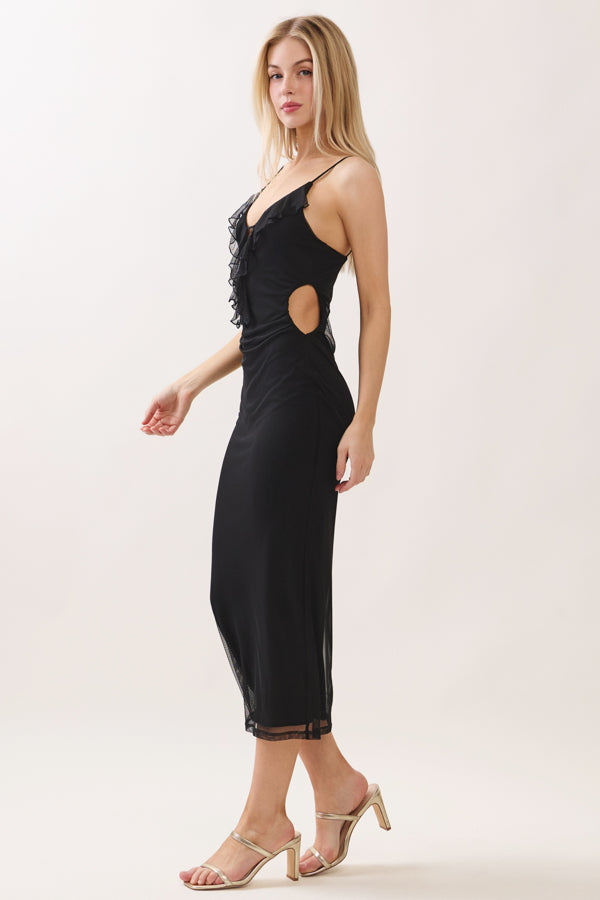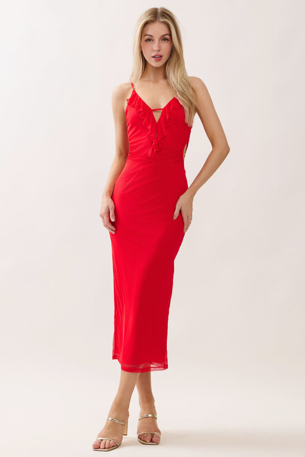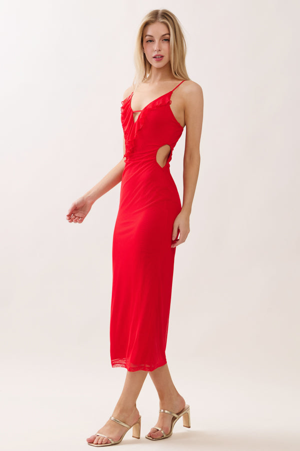 HALTER RUFFLE V-NK CUT OUT WAIST MIDI DRESS