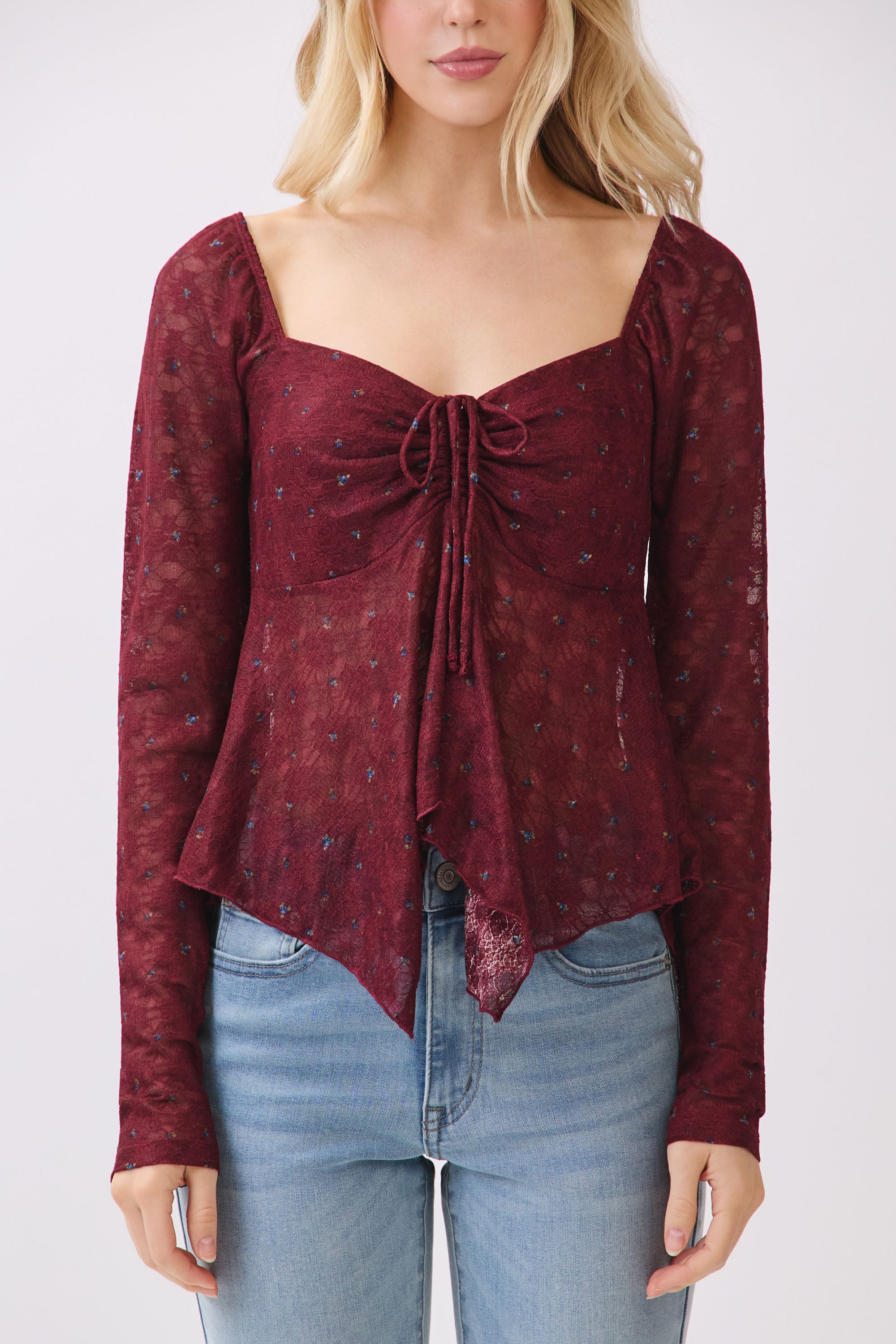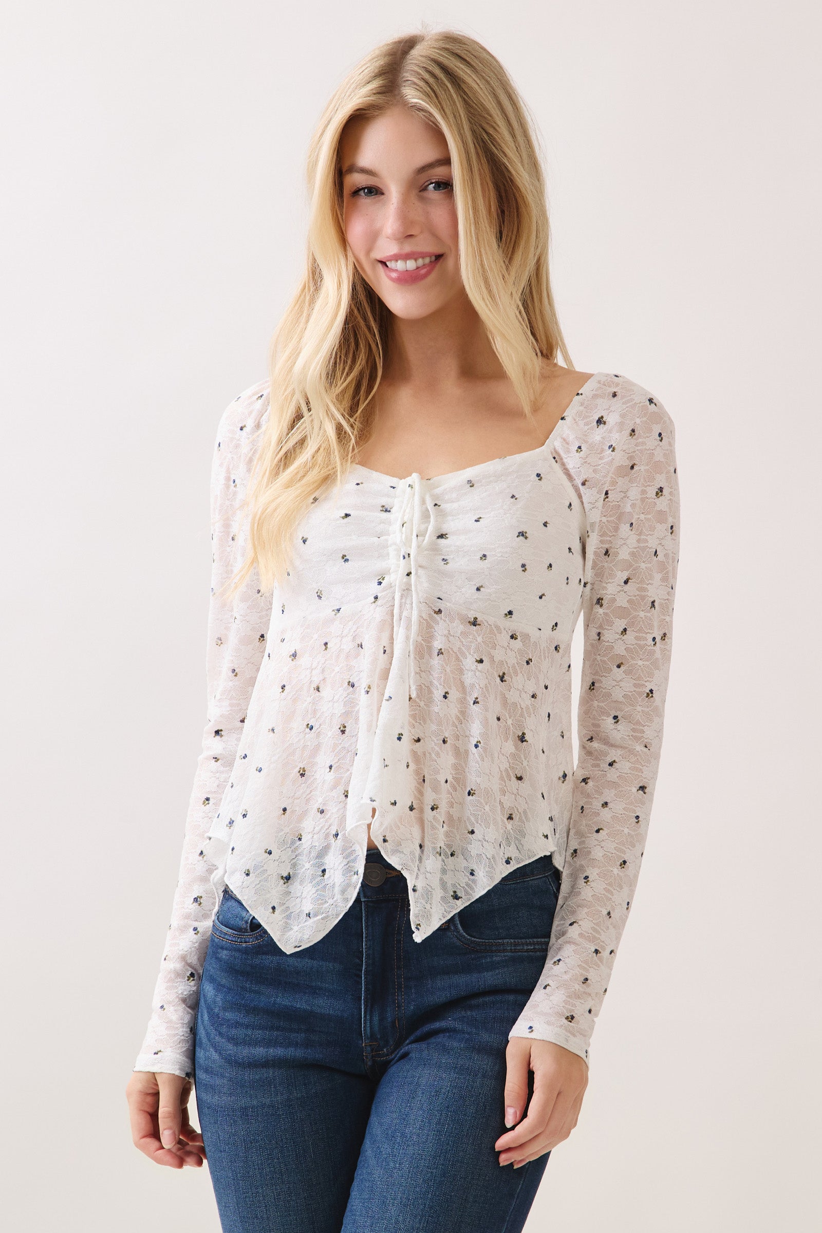LONG SLV LACE FLY AWAY TOP