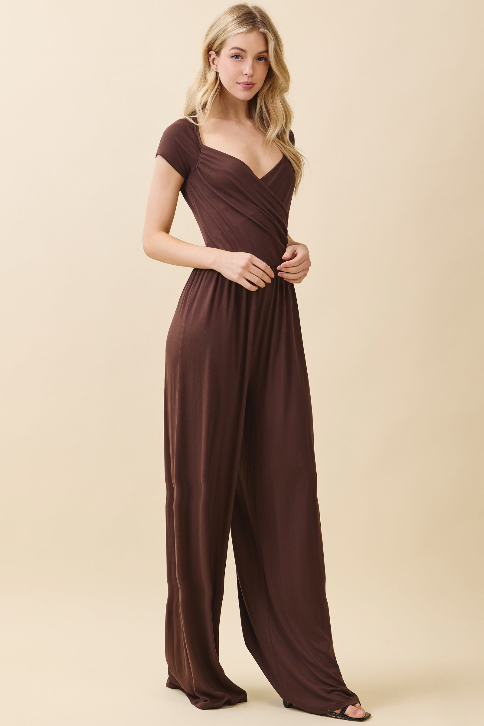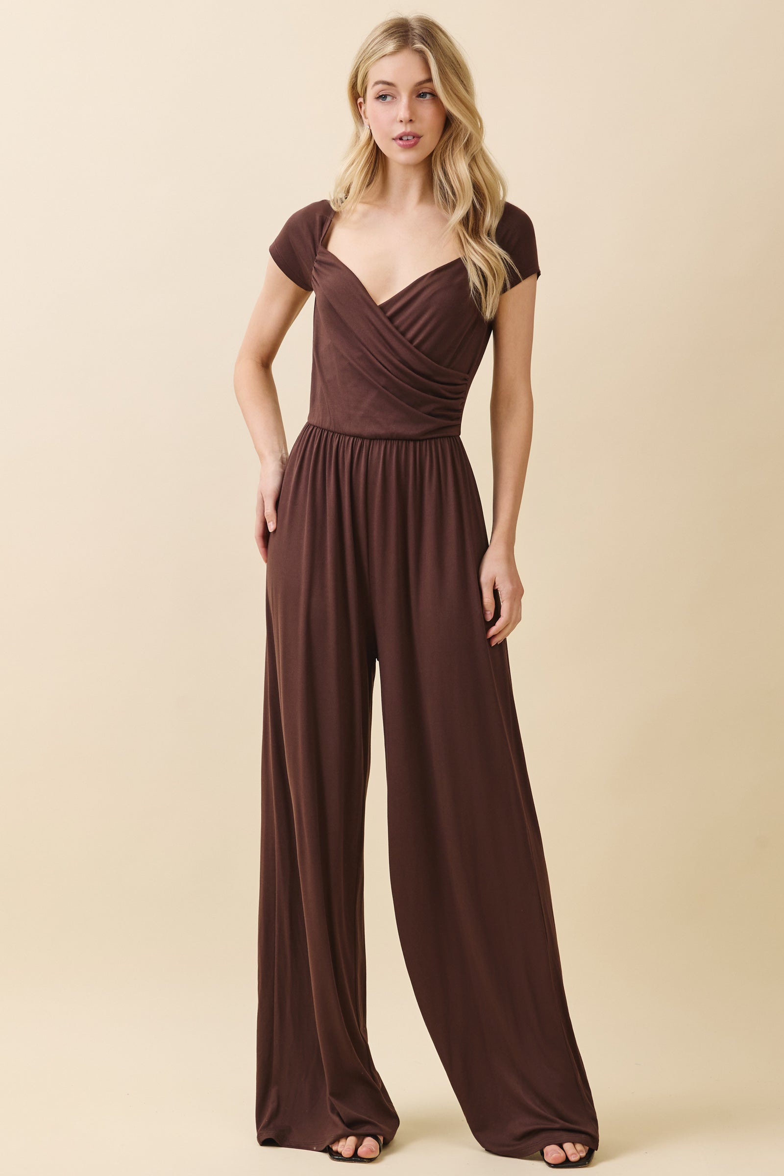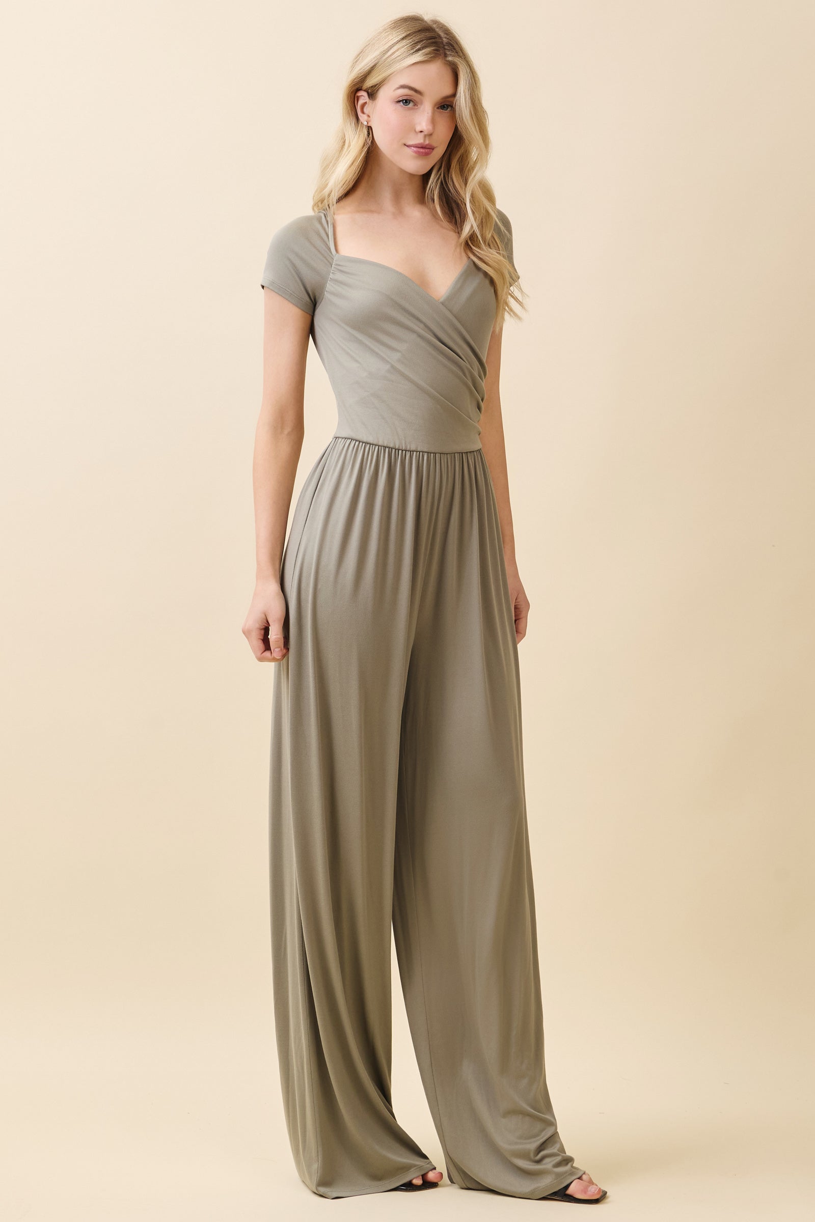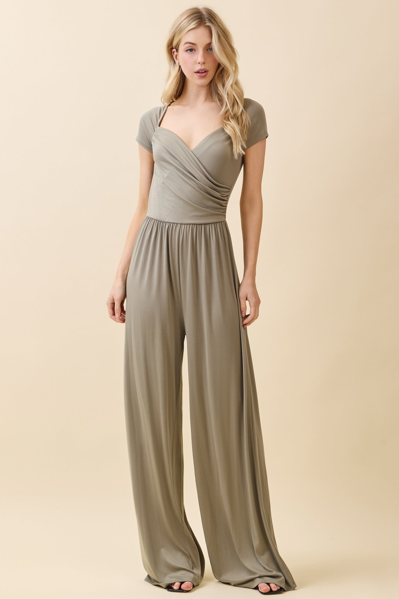 RUCHED SURPLICE PALAZZO JUMPSUIT