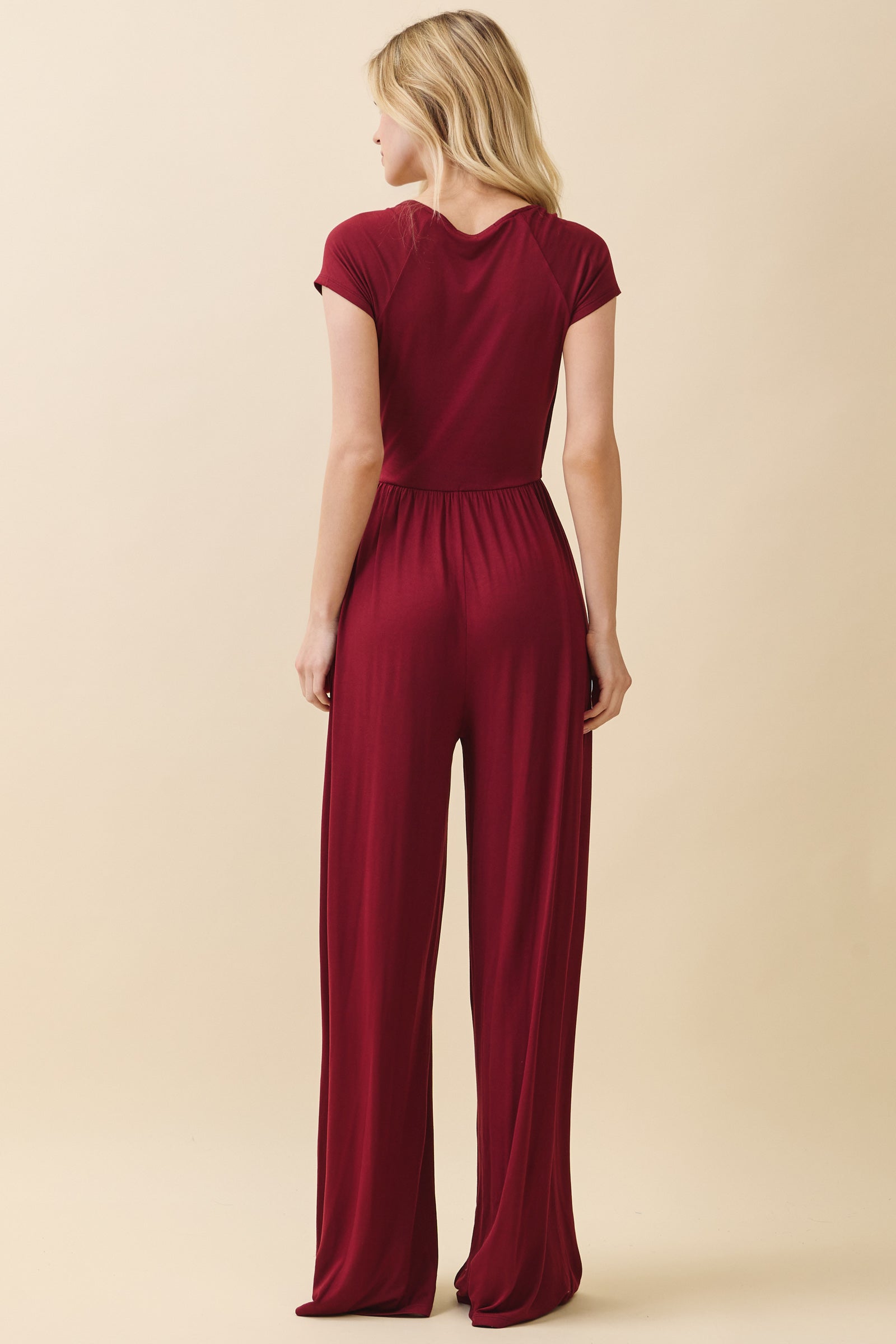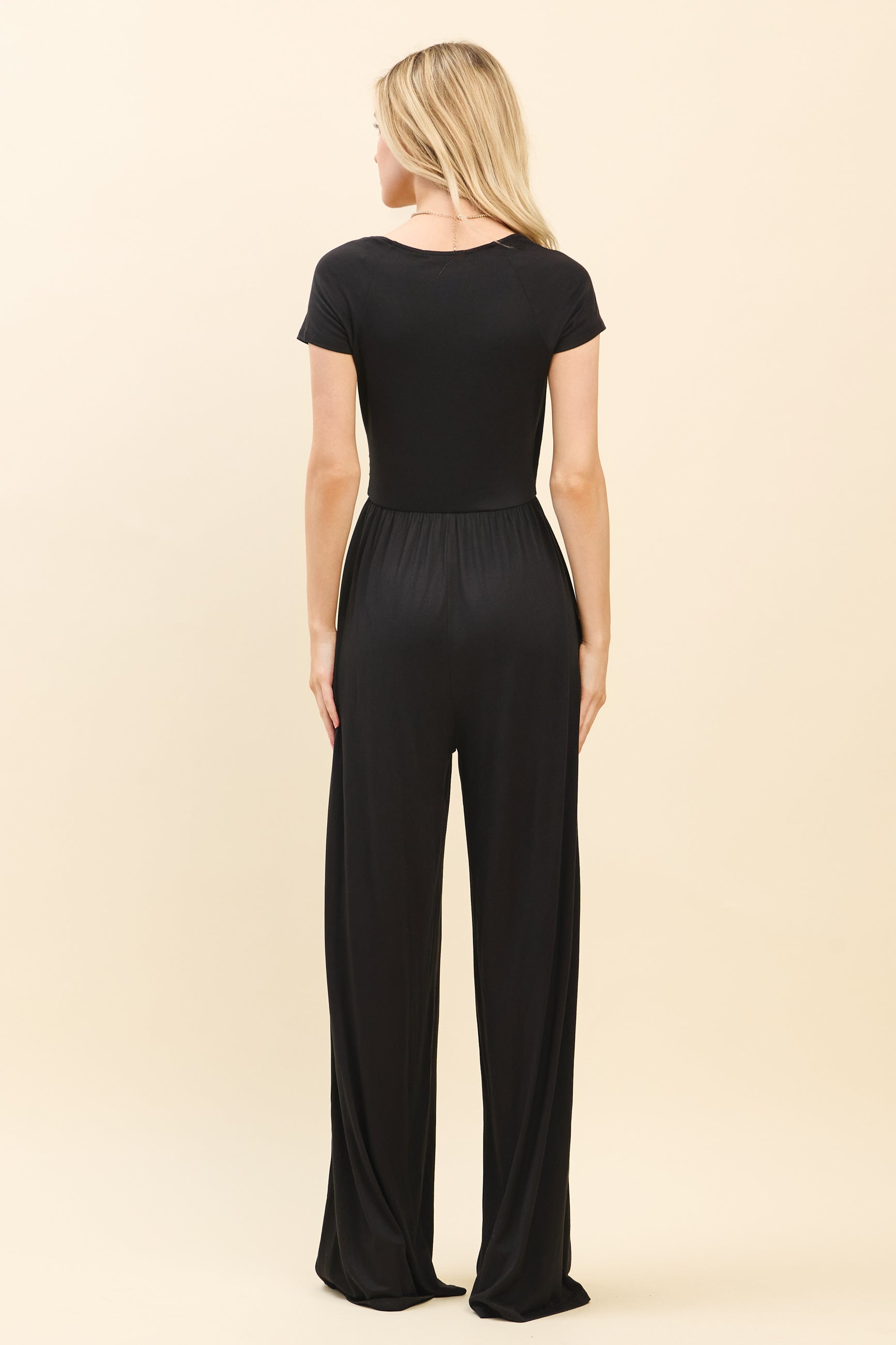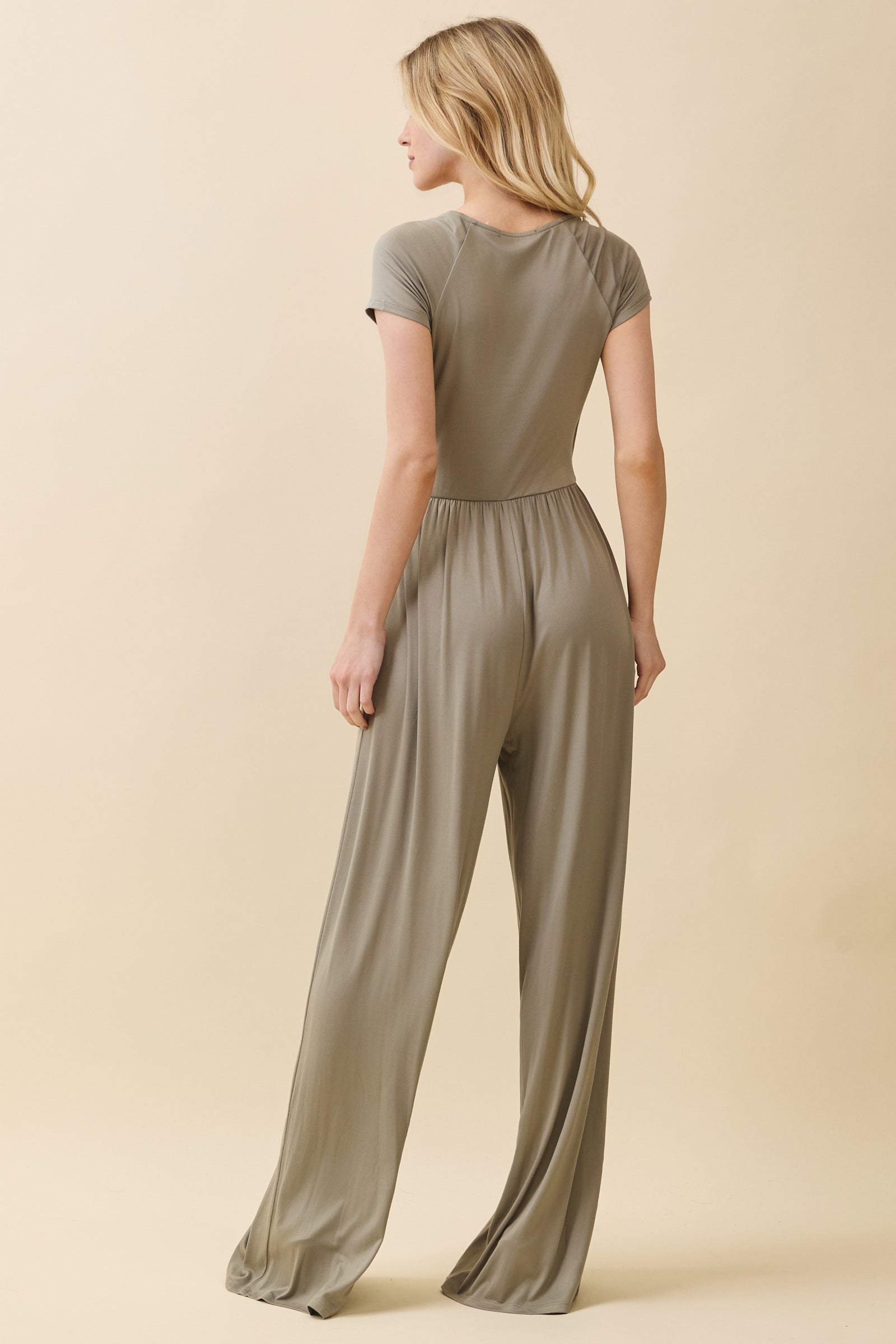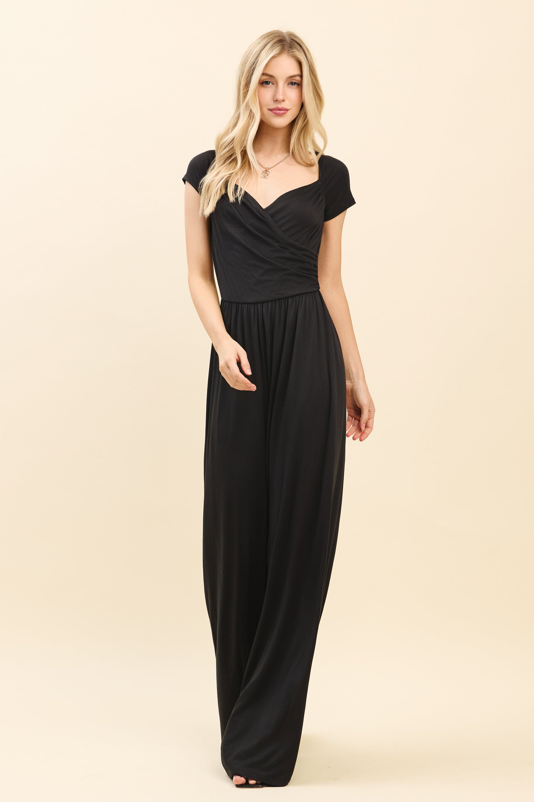 RUCHED SURPLICE PALAZZO JUMPSUIT
