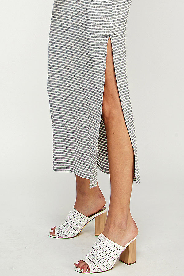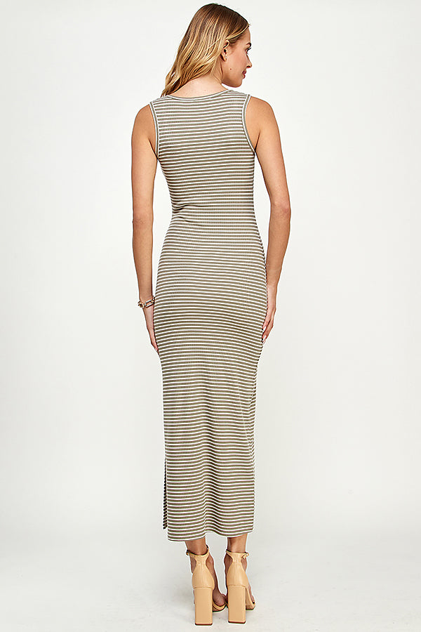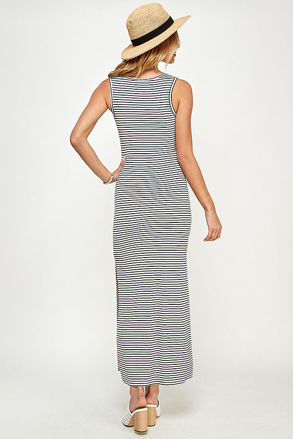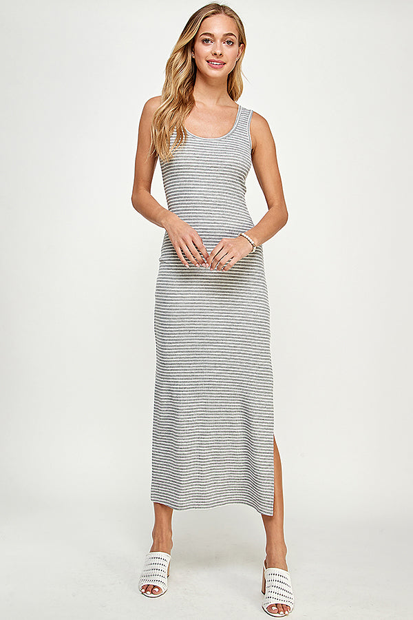 SLEEVELESS RIB MAXI STRIPE DRESS WITH SIDE SLIT