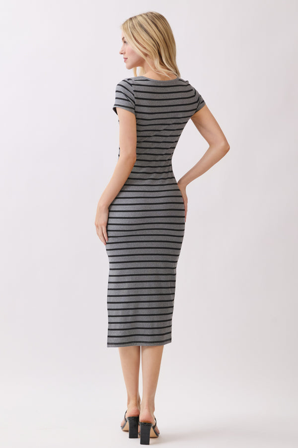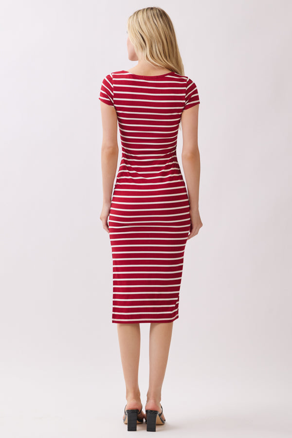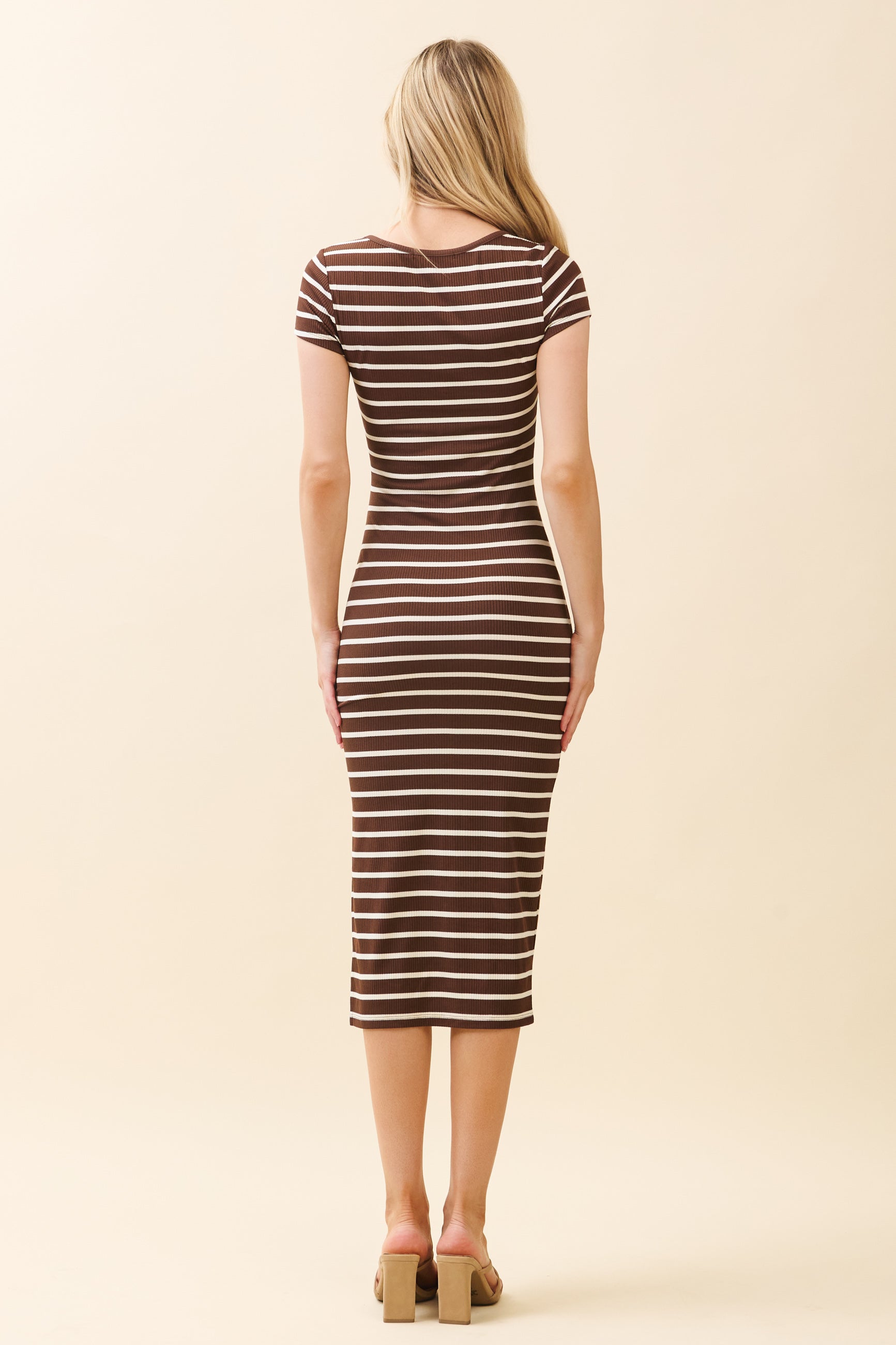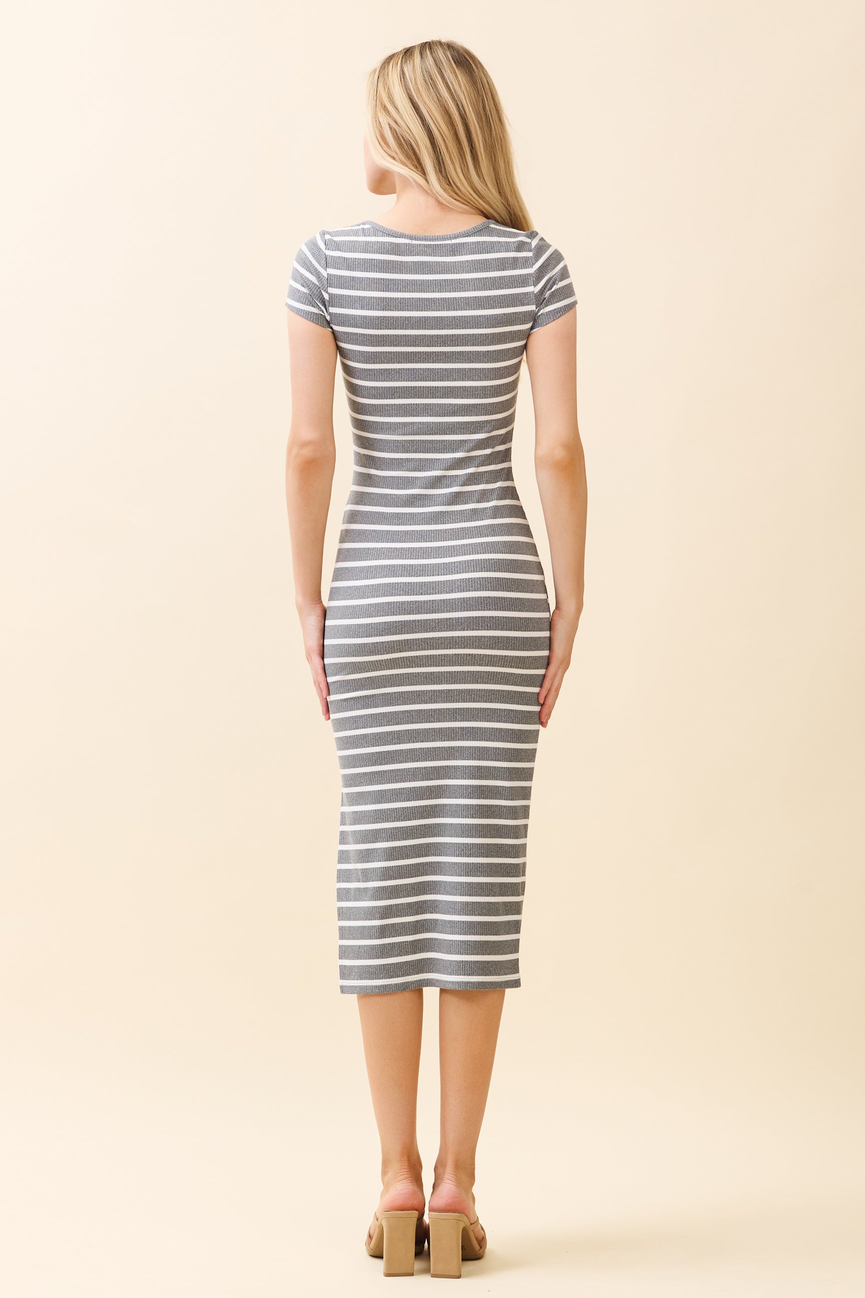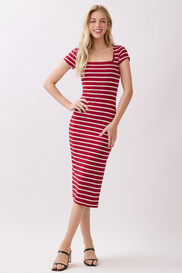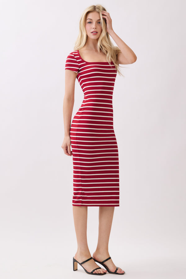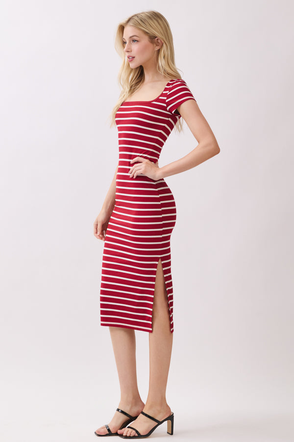 SQUARE SCOOP NECK STRIPED SIDE SLIT MIDI DRESS