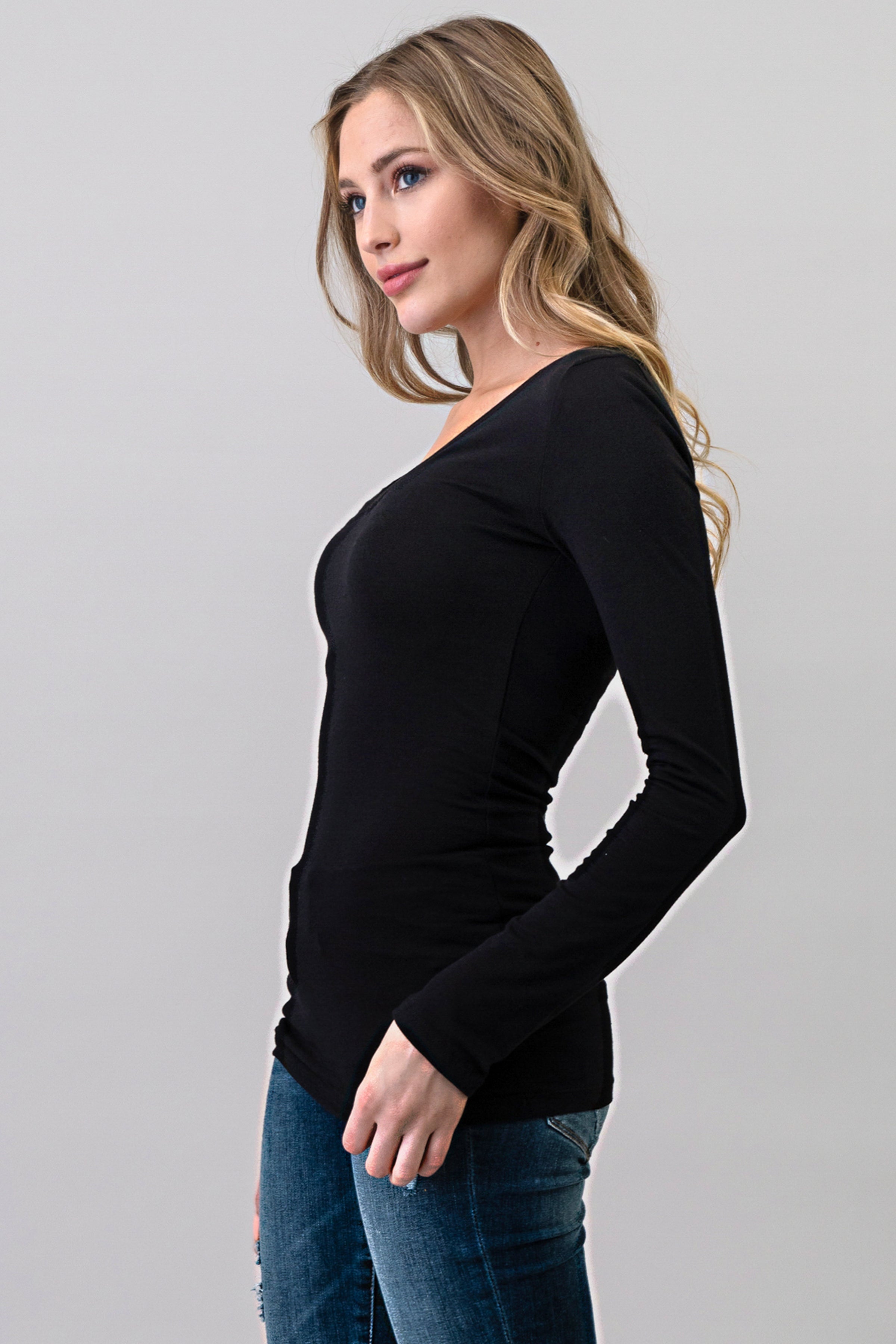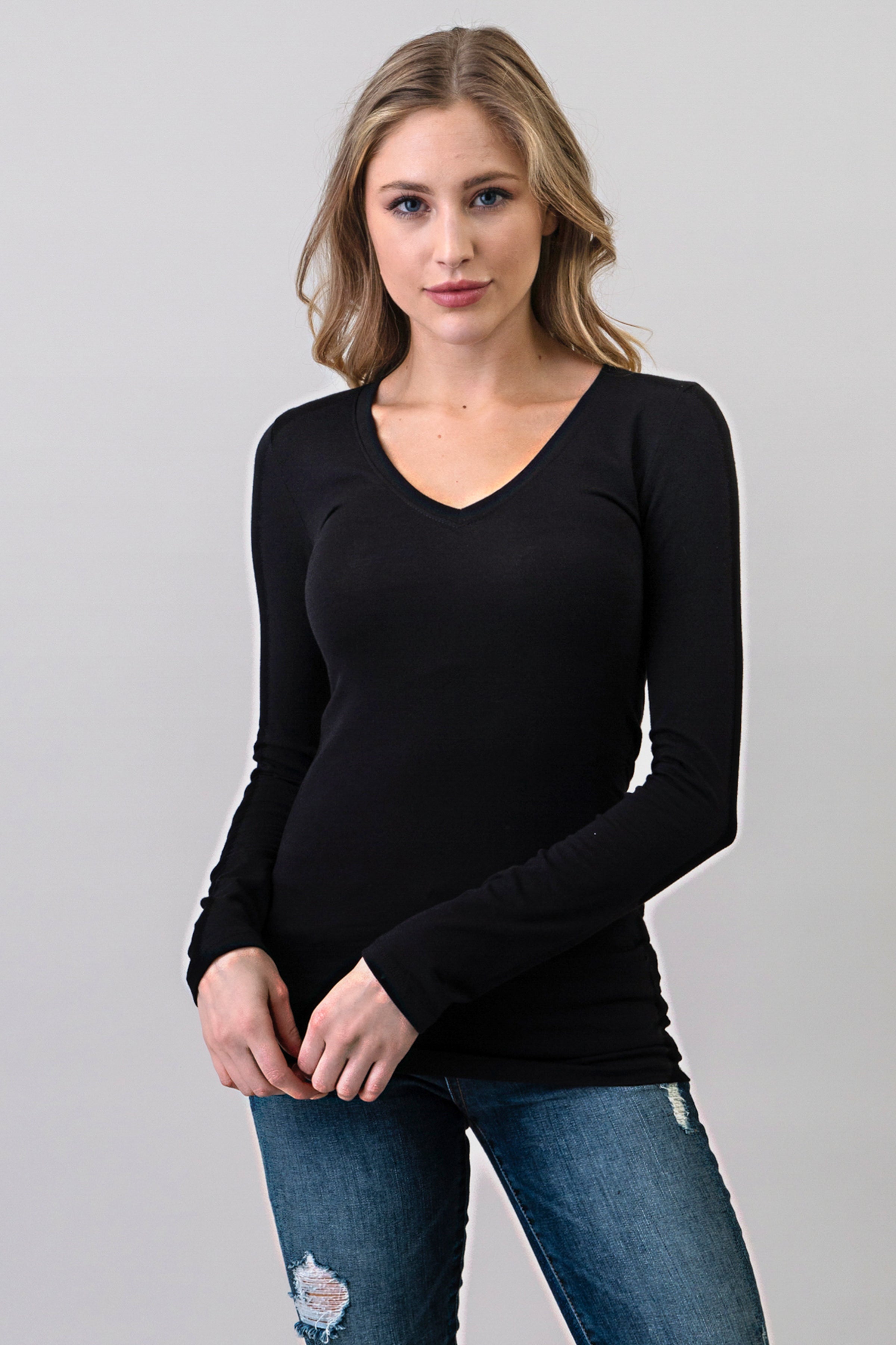 V-NECK BASIC LONG SLEEVE TOP