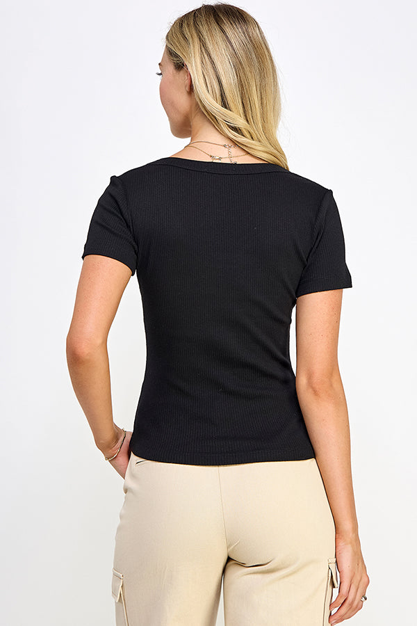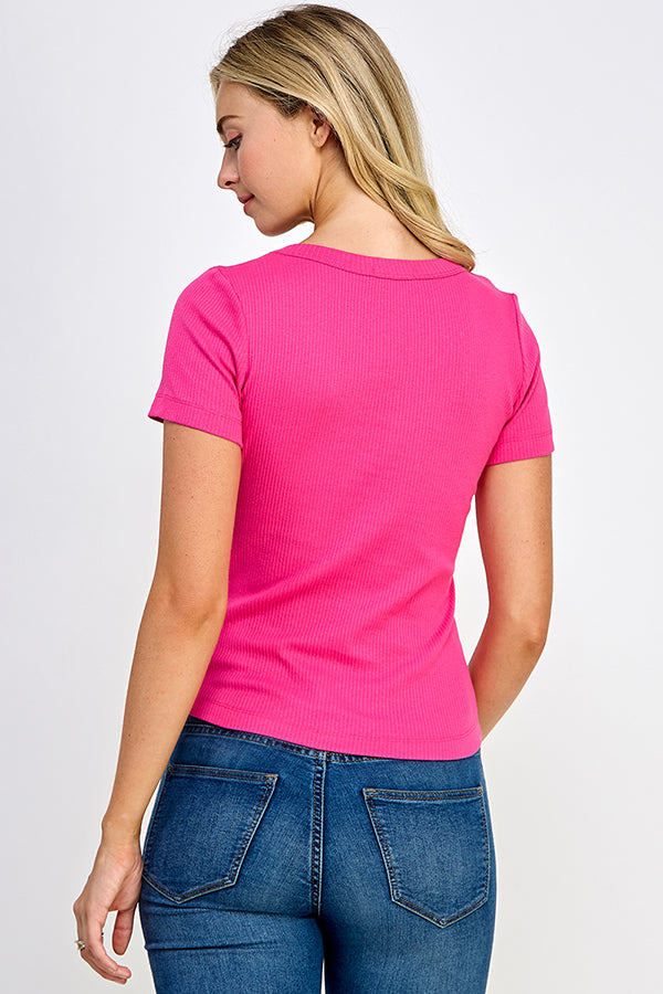V-NECK VARIEGATED RIBBED SHORT SLEEVE TEE